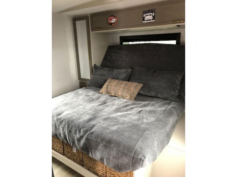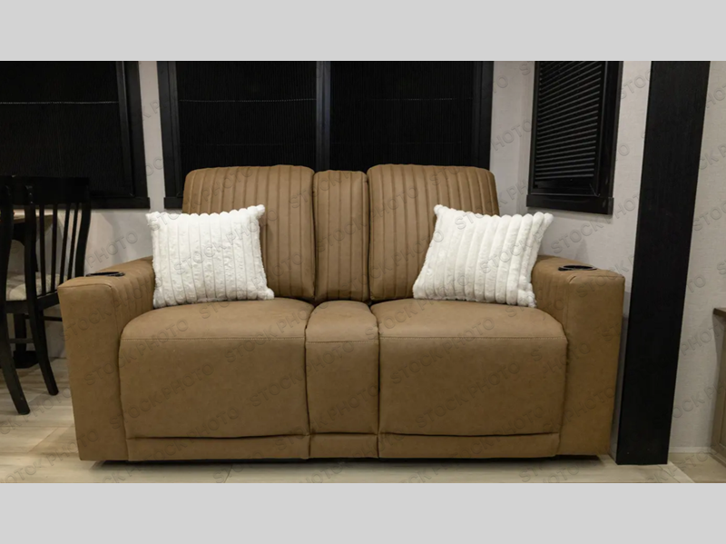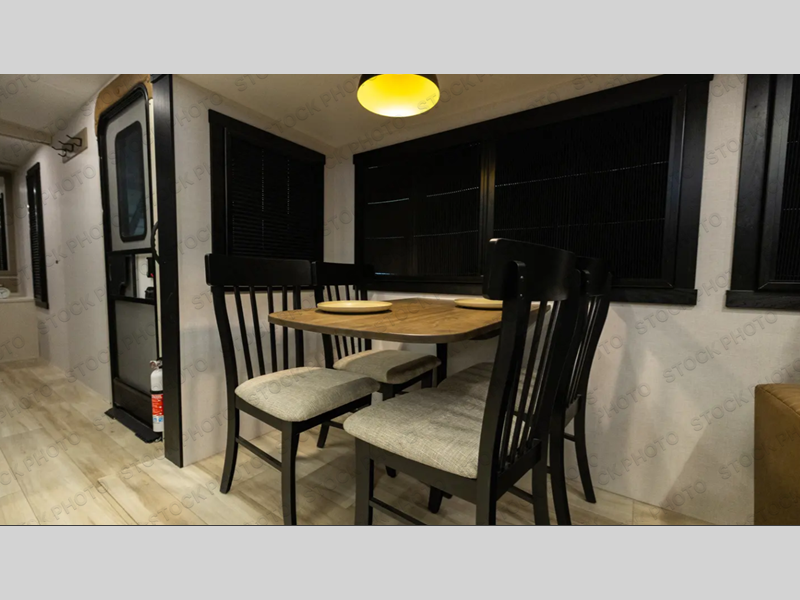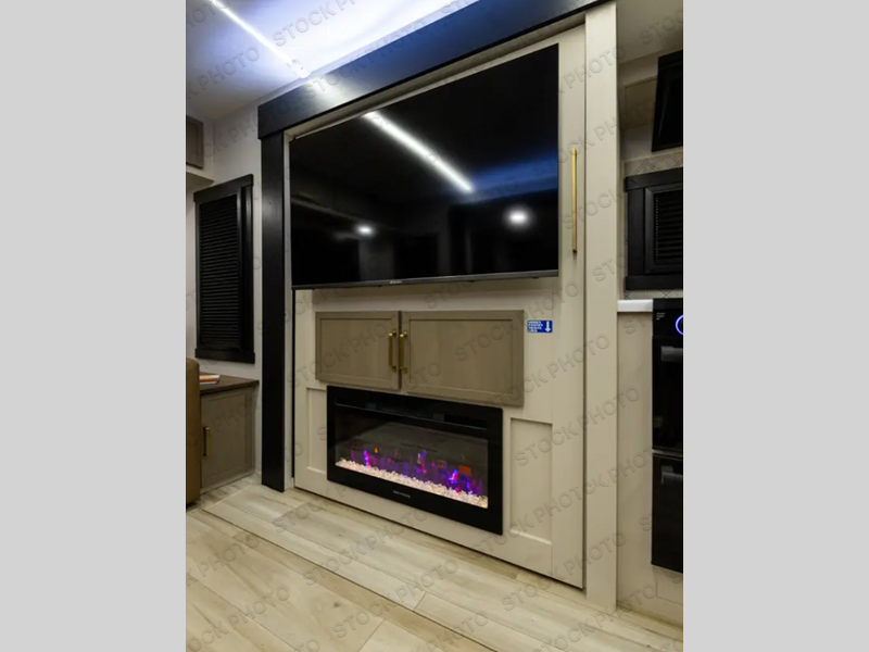 Step inside this luxurious travel trailer and see all that it has to offer! You will enjoy a good night's rest each night on the queen bed with Versa Tilt with wardrobes on either side to keep your clothes wrinkle free, and if you have a couple of guests then you can convert the rear tri-fold sofa or the booth dinette into a sleeping space. The 30" x 36" walk-in shower with a skylight above invites you to take a hot, steamy shower after a fun-filled day outdoors. Once you're cleaned up, you can grab some leftovers from the 10 cu. ft. 12V black refrigerator and warm it up in the microwave. There is also theatre seating across from the 50" LED TV with a fireplace below!