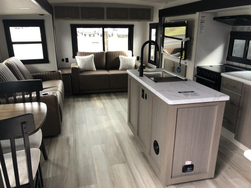The Salem Hemisphere fifth wheels and travel trailers by Forest River are packed with features, while still being value-minded! Each model is constructed with laminated "Aluma Frame" sidewalls and floor with block foam insulation plus full length barreled ceilings for added head space. There are LED awning, marker and tail lights outside, along with an extra large pass-thru storage with slam latch baggage doors, plus solar prep and Lippert On-The-Go ladder prep. The 60K on-demand tankless water heater will provide endless hot showers, and the JBL sound system includes a head unit plus interior and exterior speakers to keep the party going. There are also many interior comforts found throughout that will make you feel right at home!
