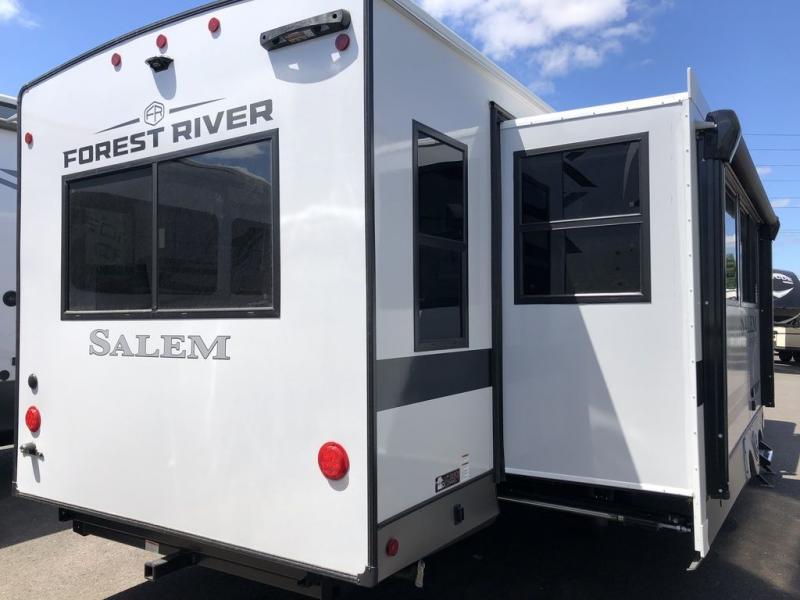 The Salem Hemisphere fifth wheels and travel trailers by Forest River are packed with features, while still being value-minded! Each model is constructed with laminated "Aluma Frame" sidewalls and floor with block foam insulation plus full length barreled ceilings for added head space. There are LED awning, marker and tail lights outside, along with an extra large pass-thru storage with slam latch baggage doors, plus solar prep and Lippert On-The-Go ladder prep. The 60K on-demand tankless water heater will provide endless hot showers, and the JBL sound system includes a head unit plus interior and exterior speakers to keep the party going. There are also many interior comforts found throughout that will make you feel right at home!