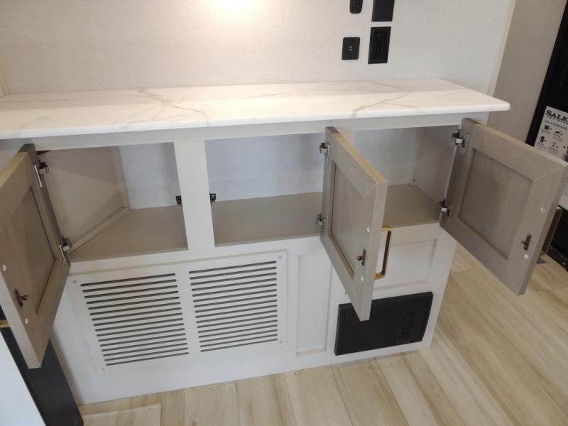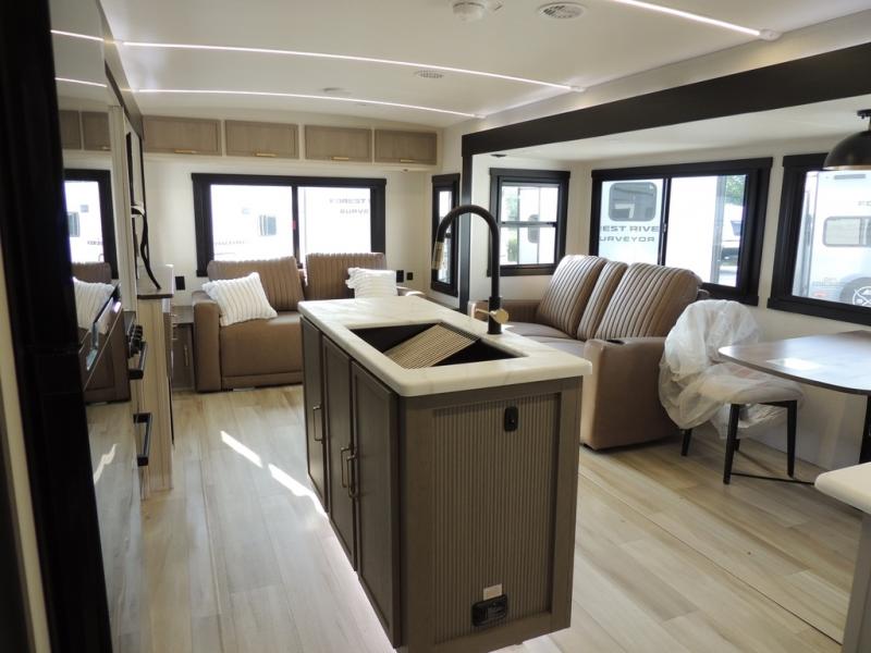 The Salem Hemisphere fifth wheels and travel trailers by Forest River are packed with features, while still being value-minded! Each model is constructed with laminated "Aluma Frame" sidewalls and floor with block foam insulation plus full length barreled ceilings for added head space. There are LED awning, marker and tail lights outside, along with an extra large pass-thru storage with slam latch baggage doors, plus solar prep and Lippert On-The-Go ladder prep. The 60K on-demand tankless water heater will provide endless hot showers, and the JBL sound system includes a head unit plus interior and exterior speakers to keep the party going. There are also many interior comforts found throughout that will make you feel right at home!