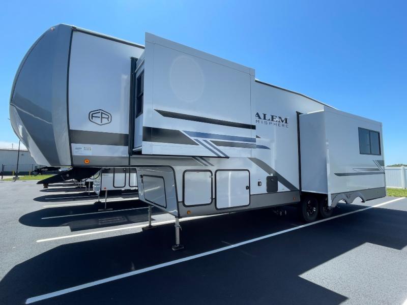 The Salem Hemisphere fifth wheels and travel trailers by Forest River are packed with features, while still being value-minded! Each model is constructed with laminated "Aluma Frame" sidewalls and floor with block foam insulation plus full length barreled ceilings for added head space. There are LED awning, marker and tail lights outside, along with an extra large pass-thru storage with slam latch baggage doors, plus solar prep and Lippert On-The-Go ladder prep. The 60K on-demand tankless water heater will provide endless hot showers, and the JBL sound system includes a head unit plus interior and exterior speakers to keep the party going. There are also many interior comforts found throughout that will make you feel right at home!