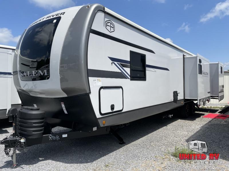 The Salem Hemisphere fifth wheels and travel trailers by Forest River are packed with features, while still being value-minded! Each model is constructed with laminated "Aluma Frame" sidewalls and floor with block foam insulation plus full length barreled ceilings for added head space. There are LED awning, marker and tail lights outside, along with an extra large pass-thru storage with slam latch baggage doors, plus solar prep and Lippert On-The-Go ladder prep. The 60K on-demand tankless water heater will provide endless hot showers, and the JBL sound system includes a head unit plus interior and exterior speakers to keep the party going. There are also many interior comforts found throughout that will make you feel right at home!