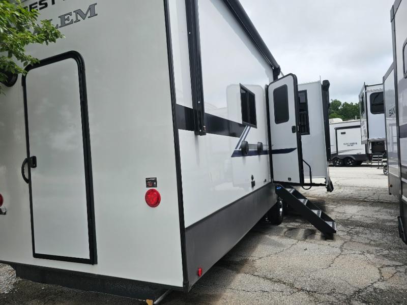 The Salem Hemisphere fifth wheels and travel trailers by Forest River are packed with features, while still being value-minded! Each model is constructed with laminated "Aluma Frame" sidewalls and floor with block foam insulation plus full length barreled ceilings for added head space. There are LED awning, marker and tail lights outside, along with an extra large pass-thru storage with slam latch baggage doors, plus solar prep and Lippert On-The-Go ladder prep. The 60K on-demand tankless water heater will provide endless hot showers, and the JBL sound system includes a head unit plus interior and exterior speakers to keep the party going. There are also many interior comforts found throughout that will make you feel right at home!