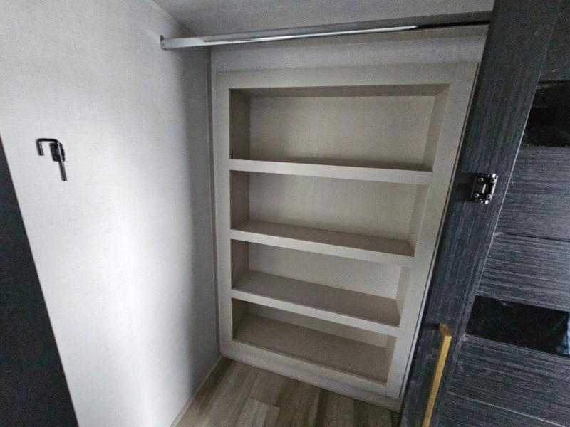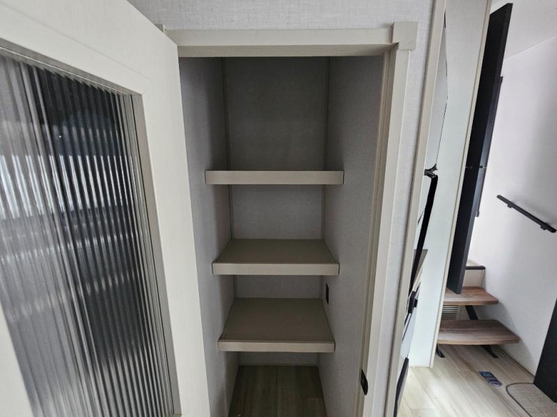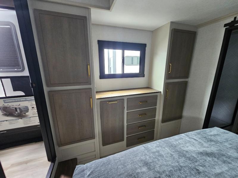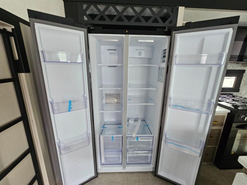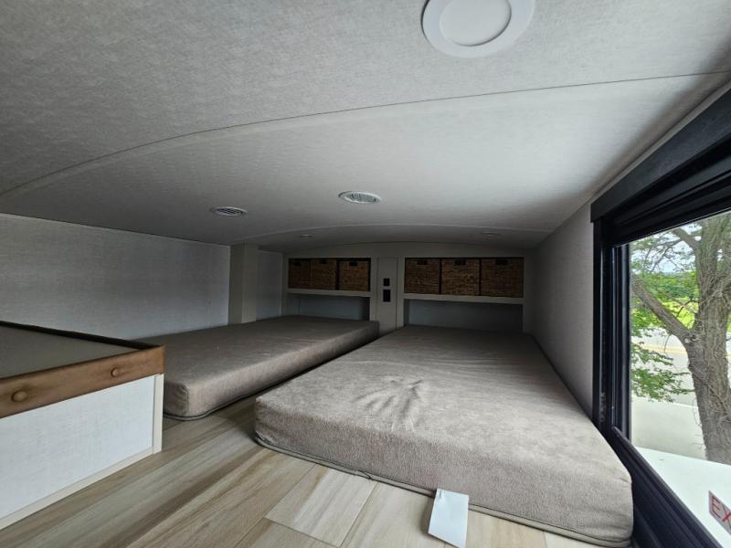 It's easy to see why this fifth wheel is named 375FAM; it's for the whole family or group of friends! There are two private bedrooms, two full baths, a loft, and four slides for tons of space! The front bedroom includes a custom king bed, a dresser with a bench beside it, plus a walk-in closet with shelves and washer/dryer prep! Head to the rear master bedroom to find a custom queen bed, dual wardrobes, plus a rear bath with the second entry door! The loft above this room includes two bunk mats and storage for your guests' things, or you can utilize this space for storage if you don't have extra campers tag along. Everyone can meet in the main living area/kitchen that includes table and chairs, theater seating, a spacious kitchen island with an extension, plus an entertainment center with a fireplace. There is also a 16 cu. ft. 12V refrigerator and walk-in pantry for food storage galore!