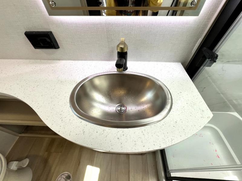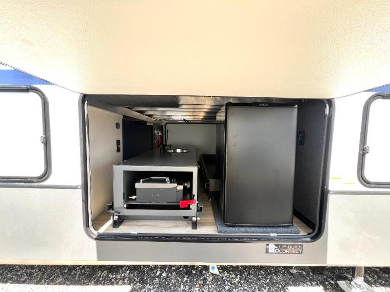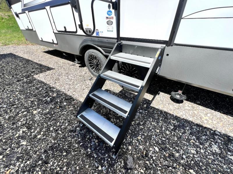 With each Forest River Salem Hemisphere Elite fifth wheel, there are laminated "Aluma Frame" sidewalls and floor with block foam insulation and a full-profile wrap-around front cap. There are also power stabilizer jacks and landing gear outside, along with back up camera prep and Lippert On-The-Go ladder prep, plus an AccessiBelly Underbelly for added protection against the elements. The included Elevated Value Package features high-end solid surface countertops, a JBL sound system, and an RV Airflow mechanism, which provides a minimum of 25% better airflow. You'll find even more amenities within the Expedition Package, such as an in-line water filtration system, a king bed in the master bedrooms, a spacious 20 cu. ft. refrigerator, a 24" four burner "turkey-sized" gas range, and more residential features!