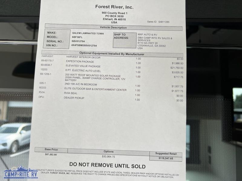 Forest River Salem Hemisphere Elite fifth wheel 36FL highlights: