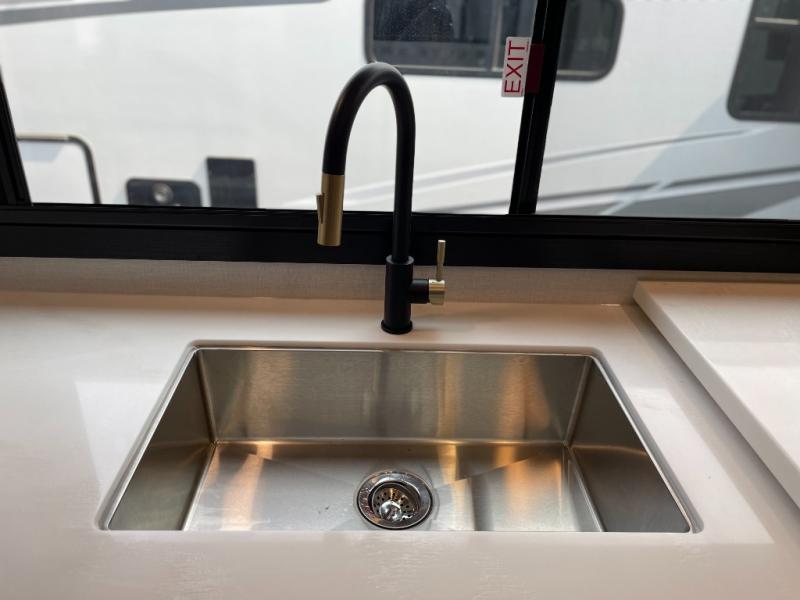 With each Forest River Salem Hemisphere Elite fifth wheel, there are laminated "Aluma Frame" sidewalls and floor with block foam insulation and a full-profile wrap-around front cap. There are also power stabilizer jacks and landing gear outside, along with back up camera prep and Lippert On-The-Go ladder prep, plus an AccessiBelly Underbelly for added protection against the elements. The included Elevated Value Package features high-end solid surface countertops, a JBL sound system, and an RV Airflow mechanism, which provides a minimum of 25% better airflow. You'll find even more amenities within the Expedition Package, such as an in-line water filtration system, a king bed in the master bedrooms, a spacious 20 cu. ft. refrigerator, a 24" four burner "turkey-sized" gas range, and more residential features!