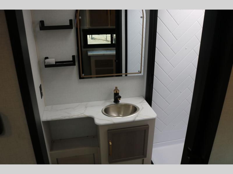 With any Salem Hemisphere Hyper-Lyte travel trailer by Forest River, you will appreciate a wide stance axle and Maxxis radial tires for smooth towing, plus laminated "Aluma Frame" sidewalls and floor for added durability. There are also square windows with built-in shades with reflecting thermal-foil backing to help keep your trailer cool during the summer. The 2" accessory hitch receiver will allow you to bring along more camp gear and the tankless water heater is a feature you won't want to camp without! Inside, you'll find Temple Cherry cabinetry, wood door casings in place of plastic, a residential single bowl undermount sink, and many more comforts. Outside, your furry friend will be happy with the shaded pet tether and security hook, and there is even an outside shower with hot and cold water to fill the dogs water bowl and wash off hiking boots!