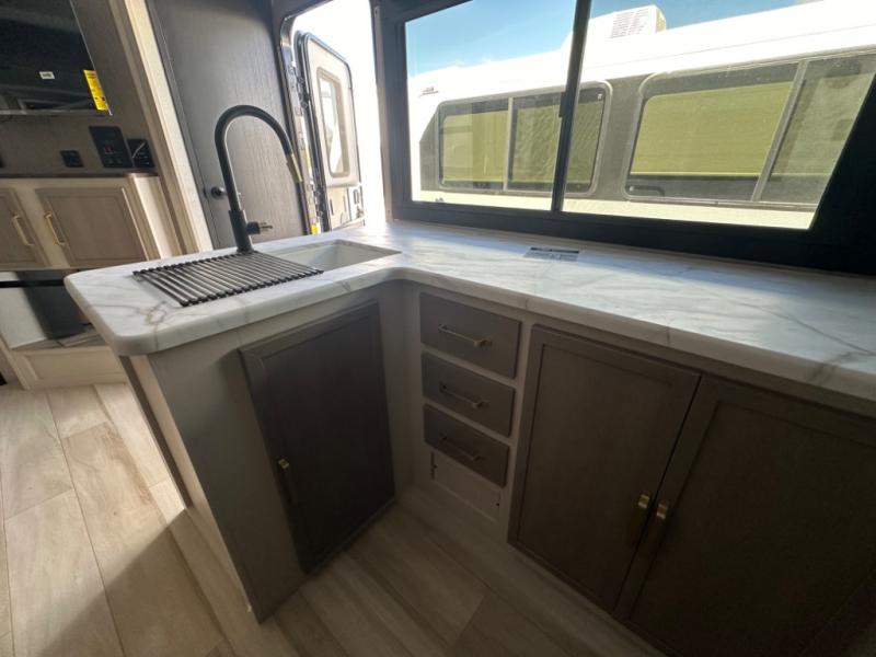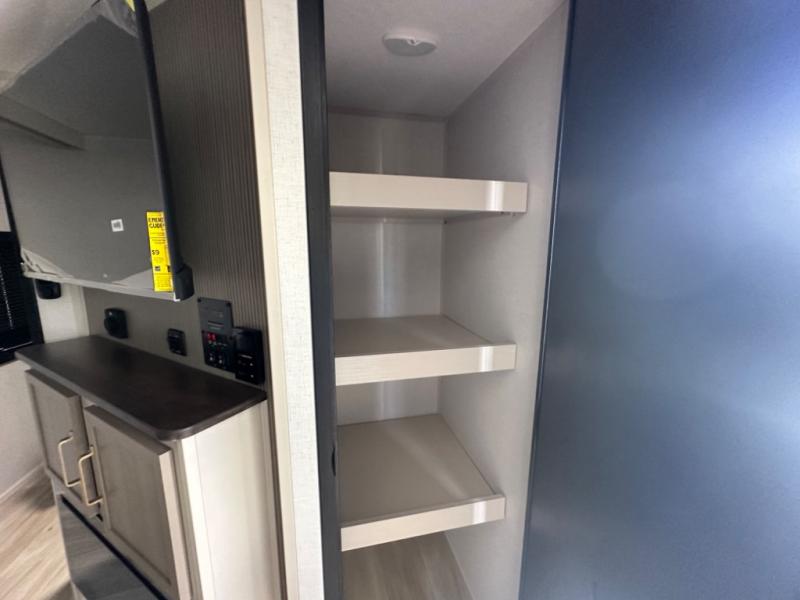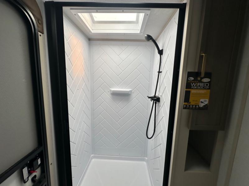 With any Salem Hemisphere Hyper-Lyte travel trailer by Forest River, you will appreciate a wide stance axle and Maxxis radial tires for smooth towing, plus laminated "Aluma Frame" sidewalls and floor for added durability. There are also square windows with built-in shades with reflecting thermal-foil backing to help keep your trailer cool during the summer. The 2" accessory hitch receiver will allow you to bring along more camp gear and the tankless water heater is a feature you won't want to camp without! Inside, you'll find Temple Cherry cabinetry, wood door casings in place of plastic, a residential single bowl undermount sink, and many more comforts. Outside, your furry friend will be happy with the shaded pet tether and security hook, and there is even an outside shower with hot and cold water to fill the dogs water bowl and wash off hiking boots!