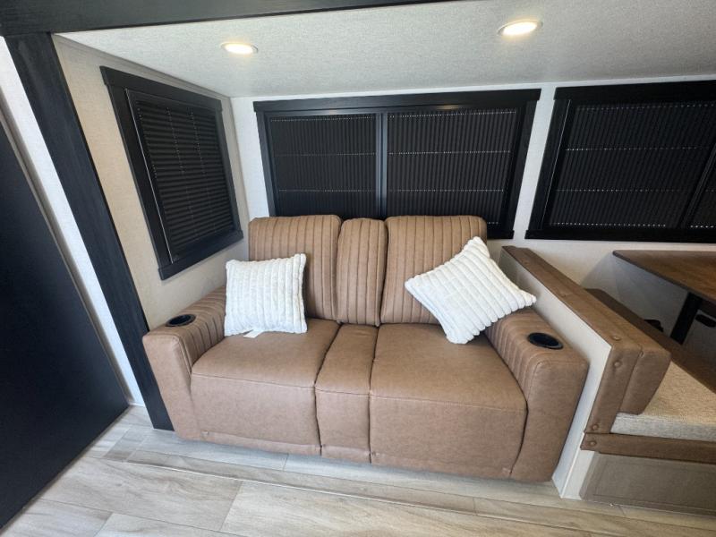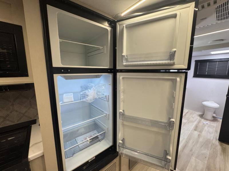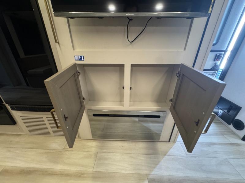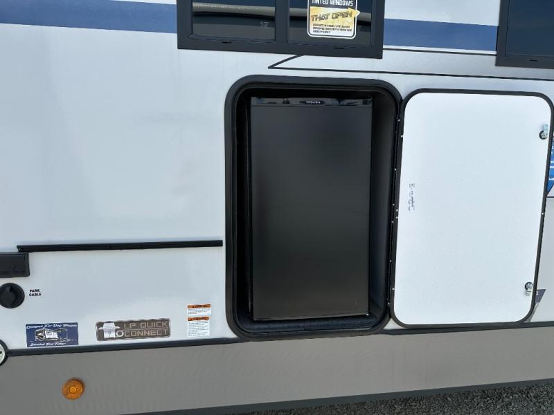 Once you step inside this spacious Salem Hemisphere Hyper-Lyte travel trailer, you'll want to take it out every other weekend for fun with your friends or family! The large slide out opens up the living and kitchen area and allows everyone to move around freely. The chef of the family can prepare dinner on the three-burner range, and they'll love having hidden storage behind the entertainment center for canned goods, snacks, and more. After a day at the lake, get cleaned up in the full rear bath before heading to the living area to relax on the theater seating while you watch a show on the 40" LED TV with a fireplace below. This trailer includes a front private bedroom with a queen bed with Versa-Tilt and space to walk around the bed. You can easily store all your hiking gear in the Texas sized pass-through storage, and cold drinks can go in the outdoor refrigerator!