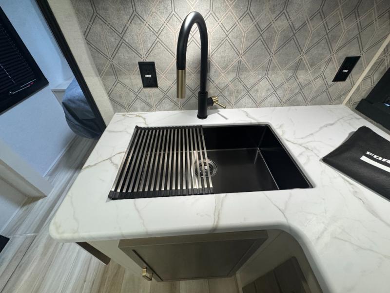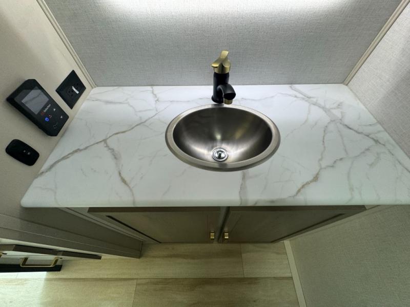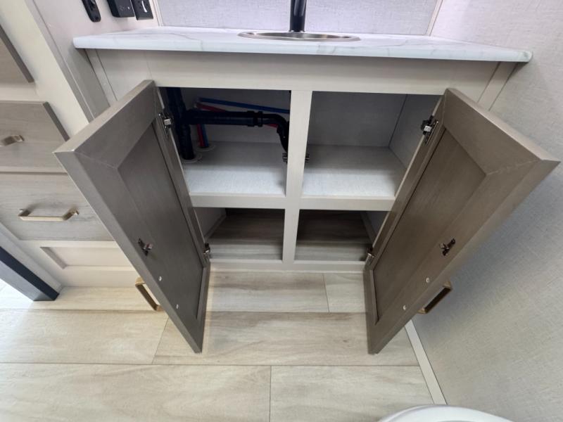 With any Salem Hemisphere Hyper-Lyte travel trailer by Forest River, you will appreciate a wide stance axle and Maxxis radial tires for smooth towing, plus laminated "Aluma Frame" sidewalls and floor for added durability. There are also square windows with built-in shades with reflecting thermal-foil backing to help keep your trailer cool during the summer. The 2" accessory hitch receiver will allow you to bring along more camp gear and the tankless water heater is a feature you won't want to camp without! Inside, you'll find Temple Cherry cabinetry, wood door casings in place of plastic, a residential single bowl undermount sink, and many more comforts. Outside, your furry friend will be happy with the shaded pet tether and security hook, and there is even an outside shower with hot and cold water to fill the dogs water bowl and wash off hiking boots!