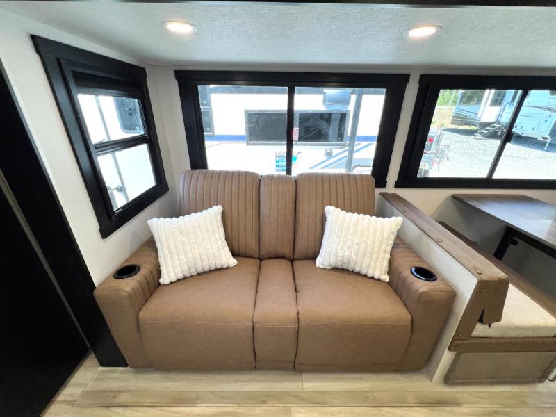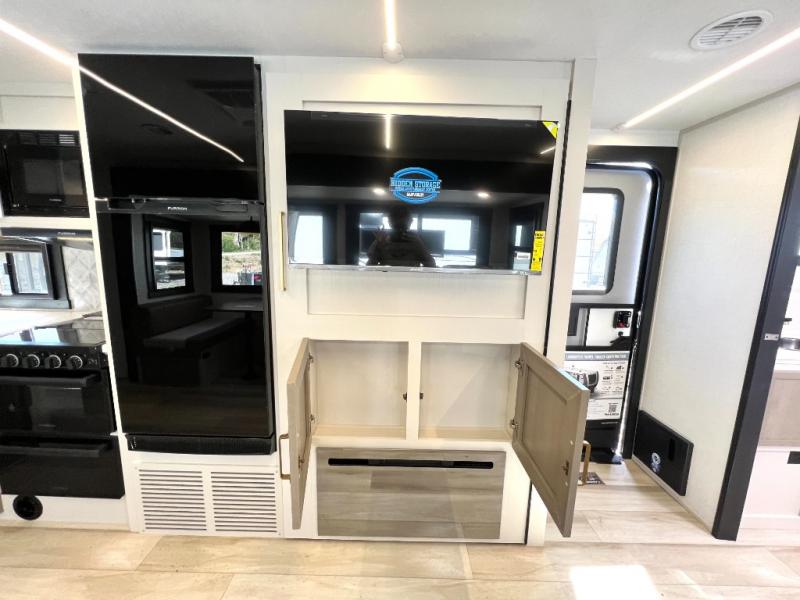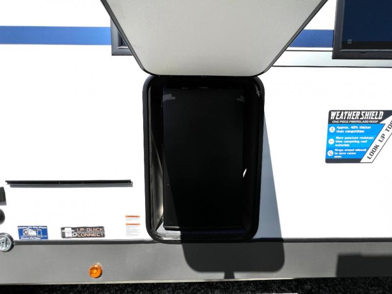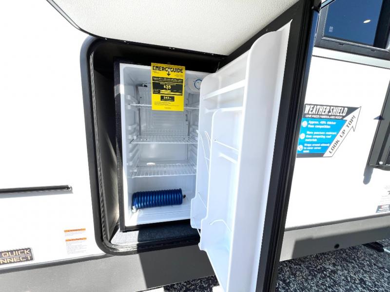 Once you step inside this spacious Salem Hemisphere Hyper-Lyte travel trailer, you'll want to take it out every other weekend for fun with your friends or family! The large slide out opens up the living and kitchen area and allows everyone to move around freely. The chef of the family can prepare dinner on the three-burner range, and they'll love having hidden storage behind the entertainment center for canned goods, snacks, and more. After a day at the lake, get cleaned up in the full rear bath before heading to the living area to relax on the theater seating while you watch a show on the 40" LED TV with a fireplace below. This trailer includes a front private bedroom with a queen bed with Versa-Tilt and space to walk around the bed. You can easily store all your hiking gear in the Texas sized pass-through storage, and cold drinks can go in the outdoor refrigerator!