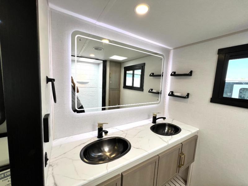 With any Salem Hemisphere Hyper-Lyte travel trailer by Forest River, you will appreciate a wide stance axle and Maxxis radial tires for smooth towing, plus laminated "Aluma Frame" sidewalls and floor for added durability. There are also square windows with built-in shades with reflecting thermal-foil backing to help keep your trailer cool during the summer. The 2" accessory hitch receiver will allow you to bring along more camp gear and the tankless water heater is a feature you won't want to camp without! Inside, you'll find Temple Cherry cabinetry, wood door casings in place of plastic, a residential single bowl undermount sink, and many more comforts. Outside, your furry friend will be happy with the shaded pet tether and security hook, and there is even an outside shower with hot and cold water to fill the dogs water bowl and wash off hiking boots!