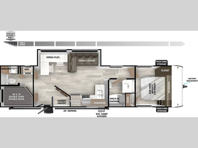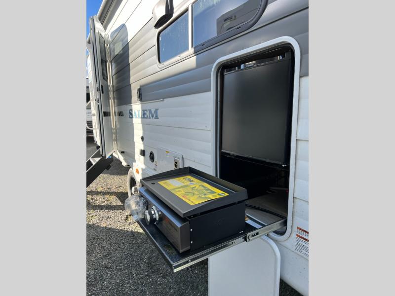 One of the standout features of the 29BDB is its two-bathroom design, offering rare convenience for families and guests. The private rear bunk room has its own dedicated bath, creating a true retreat for kids or visitors, while the main bathroom sits perfectly positioned near the primary bedroom up front. This thoughtful separation of space makes the trailer feel larger and more livable, especially during longer stays. Altogether, the Salem 29BDB blends comfort, practicality, and privacy in a way that turns every trip into an easy, enjoyable experience.