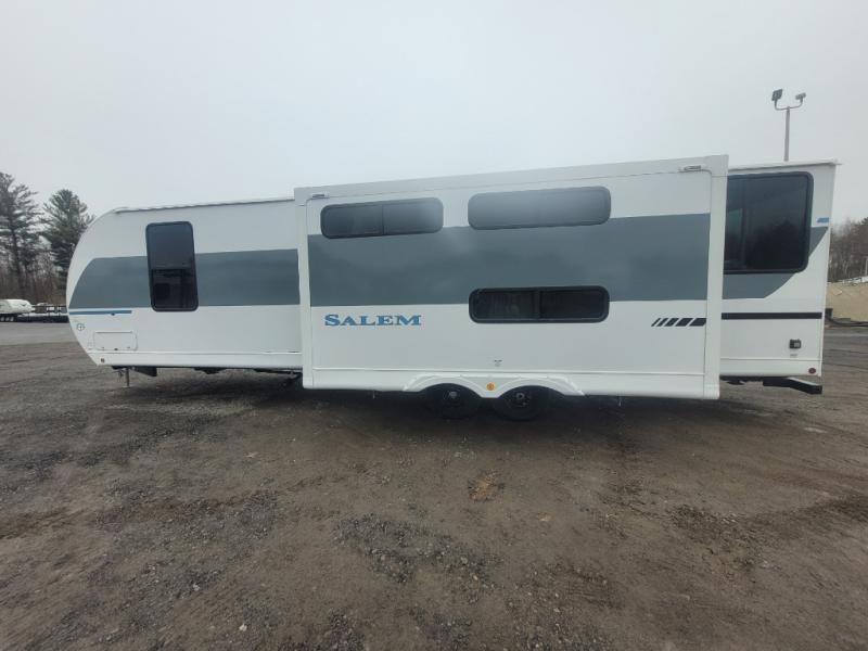 The Salem travel trailers are packed with hassle-free camping amenities! There are a variety of floorplans to choose from between three different regions. The heated and enclosed Accessibelly will help protect against the elements and debris during transport, and the exterior is sure to be eye-catching! There are stylish roller shades inside, along with updated backsplash, elegant curtain rods and curtains, plus many more interior comforts! Choose a Salem travel trailer today for quality and value!