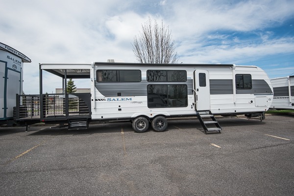 The Salem travel trailers are packed with hassle-free camping amenities! There are a variety of floorplans to choose from between three different regions. The heated and enclosed Accessibelly will help protect against the elements and debris during transport, and the exterior retro/metal redesign is sure to be eye-catching! There are stylish roller shades inside, along with updated backsplash, elegant curtain rods and curtains, plus many more interior comforts! Choose a Salem travel trailer today for quality and value!