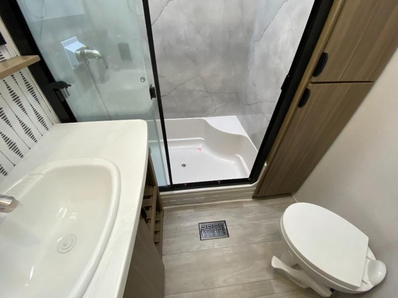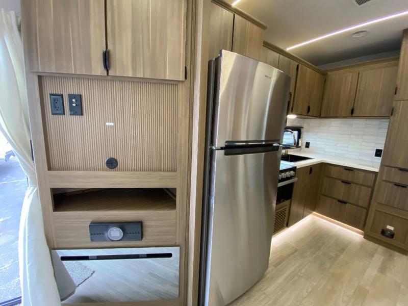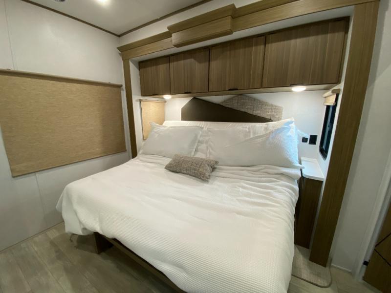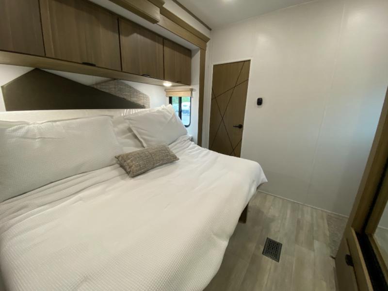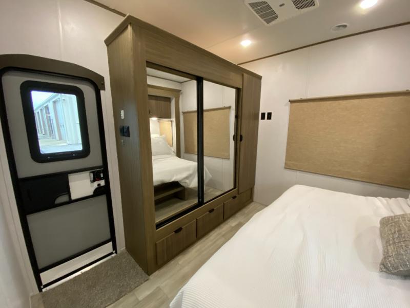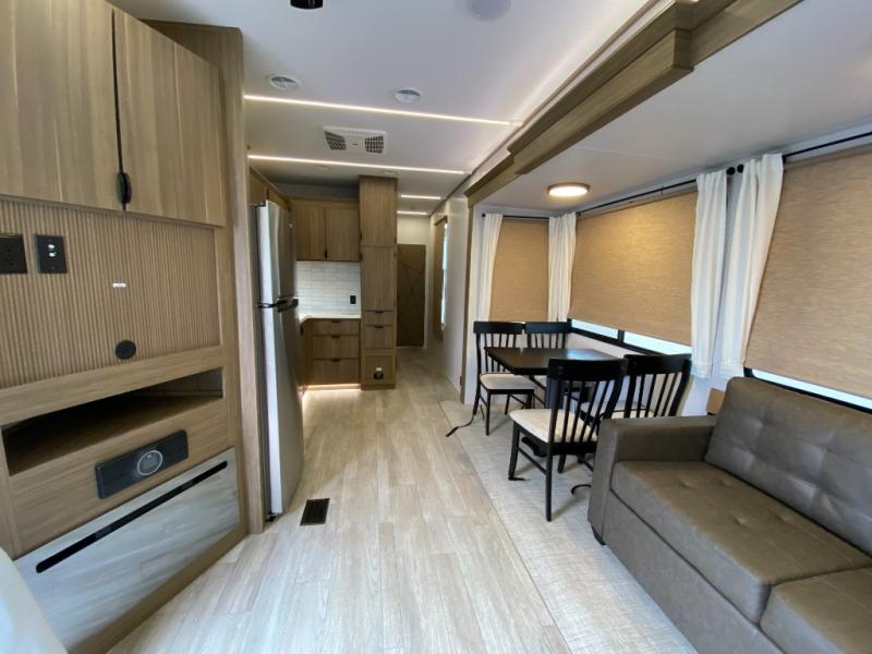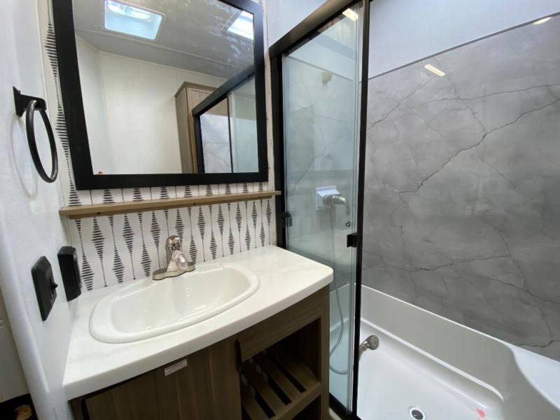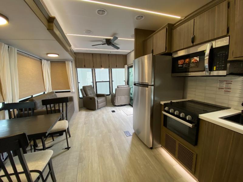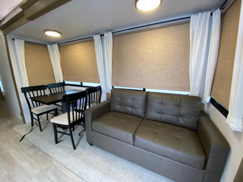 The Forest River Salem Villa Series destination trailer offers you an excellent space to relax in and rejuvenate your adventurous spirit! The 7' interior height is going to provide you with an open and spacious living area, and the heated and enclosed accessi-belly will protect your trailer from the elements. The Salem Villa Series comes loaded with upgraded designer furniture, a modern headboard redesign, stainless steel kitchen appliances, adjustable texture roller shades , and central vacuum with sweep attachment for a spotless home. There is also a few new features, including JBL speakers in the interior/exterior, a 4K blade lighting, a 60K tankless water heater, and more comforts!