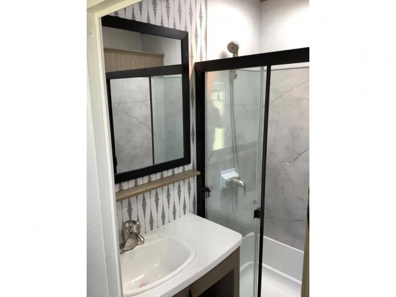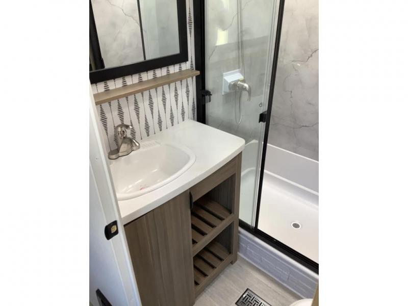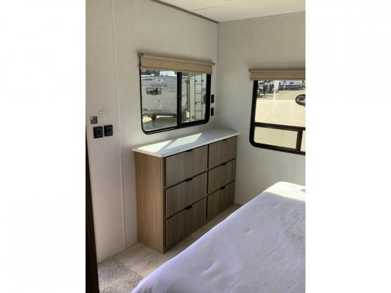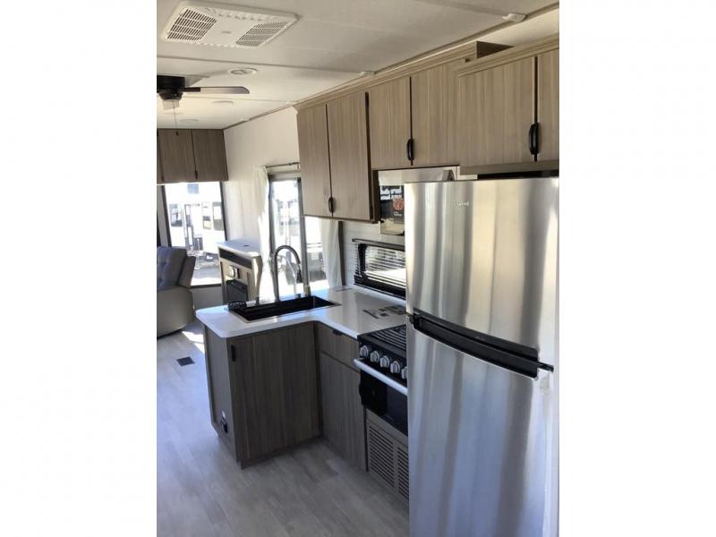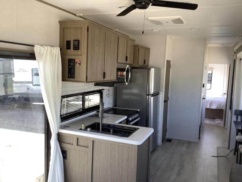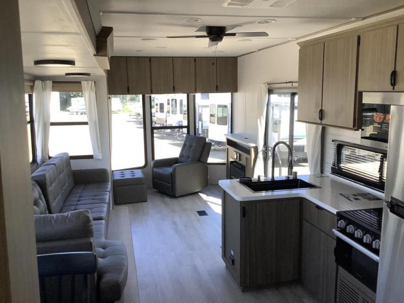 The Forest River Salem Villa Series destination trailer offers you an excellent space to relax in and rejuvenate your adventurous spirit! The 7' interior height is going to provide you with an open and spacious living area, and the heated and enclosed accessi-belly will protect your trailer from the elements. The Salem Villa Series comes loaded with upgraded designer furniture, a modern headboard redesign, stainless steel kitchen appliances, adjustable texture roller shades , and central vacuum with sweep attachment for a spotless home. There is also a few new features, including JBL speakers in the interior/exterior, a 4K blade lighting, a 60K tankless water heater, and more comforts!