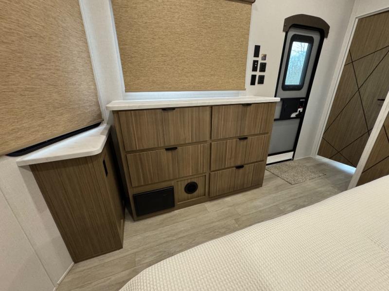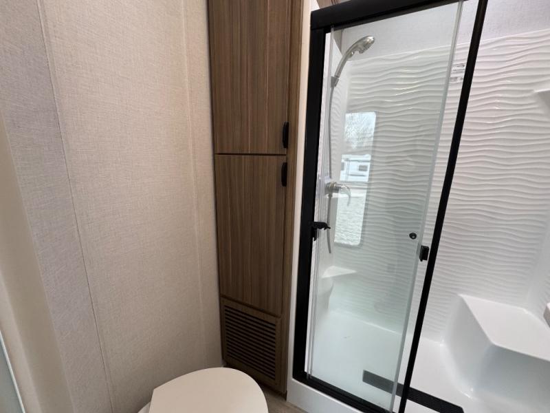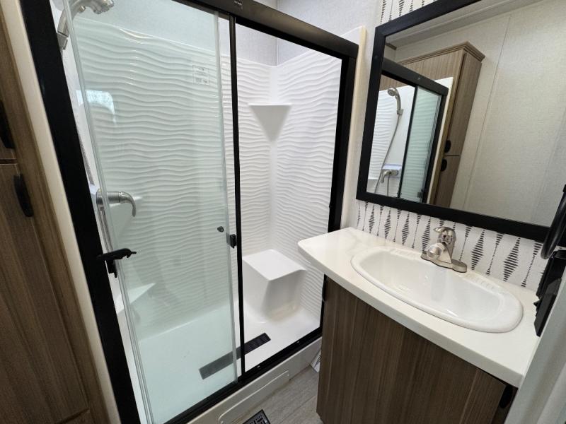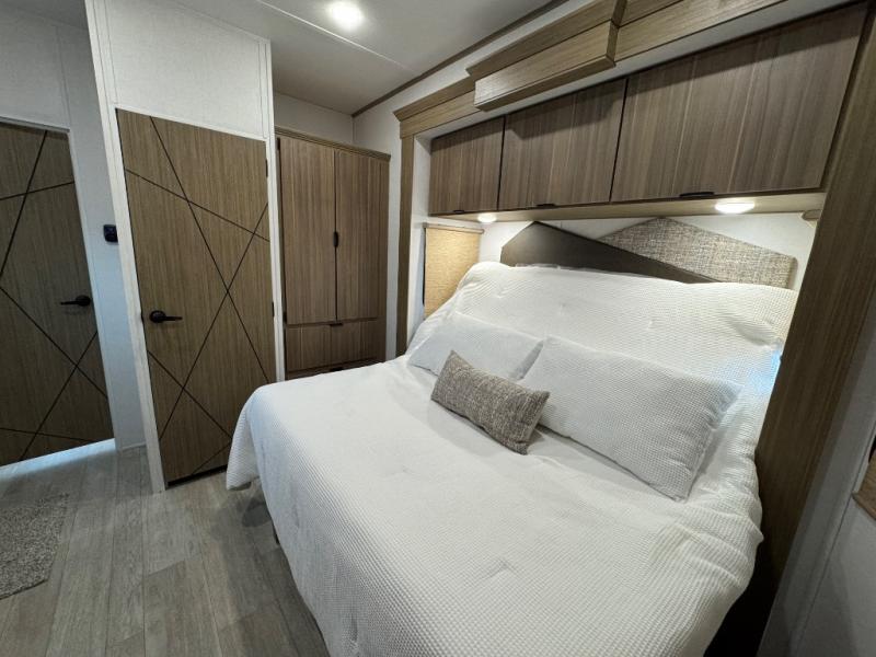 The Forest River Salem Villa Series destination trailer offers you an excellent space to relax in and rejuvenate your adventurous spirit! The 7' interior height is going to provide you with an open and spacious living area, and the heated and enclosed accessi-belly will protect your trailer from the elements. The Salem Villa Series comes loaded with upgraded designer furniture, a modern headboard redesign, stainless steel kitchen appliances, adjustable texture roller shades , and central vacuum with sweep attachment for a spotless home. There is also a few new features, including JBL speakers in the interior/exterior, a 4K blade lighting, a 60K tankless water heater, and more comforts!