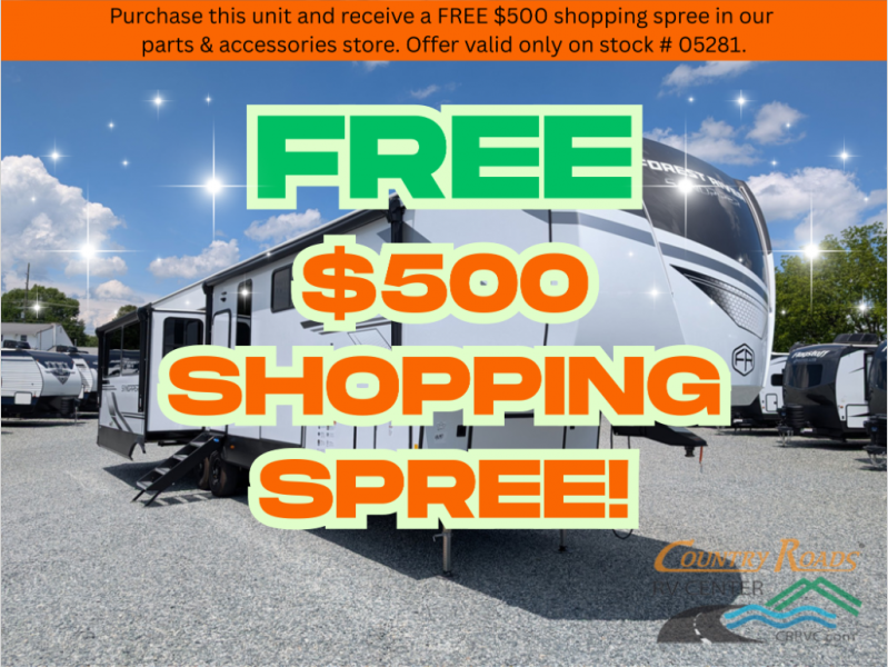 It will be easier than ever to enjoy camping trips in this triple slide out fifth wheel, or even go full-time! The combined kitchen and living area features dual opposing slides for ample space, an L-shaped sofa with a chaise lounge, and a fireplace with a hidden pantry behind for snacks! A desk with a chair and a USB port will provide a place to work if you need to send some emails, and the large kitchen island will give you ample room to prep dinner when you get hungry. There are also pendant lights here, along with a waterfall edge and barstools for dining space. The mid-coach half bath includes a toilet, sink, plus washer and dryer prep, giving you the option to make this the perfect laundry room! The master bedroom up front may be your favorite place to unwind in this unit. There is a king bed slide, a small dresser plus a tall dresser, and a TV hookup if you want the option to watch movies in bed. And you'll be wowed by the front master bedroom with its fiberglass shower with a seat, dual bath sinks, and large walk-in closet!