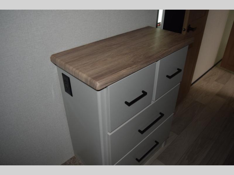 You will find the perfect balance of size, space, features, and luxury with any one of these Forest River Sandpiper fifth wheels! They are constructed with a welded aluminum framed vacuum bonded laminated superstructure, a cambered powder coated frame with rust prohibitor, and a fully enclosed underbelly to protect the units vitals during any season. The large tinted windows come with a 80/20 UV prohibitor and the unobstructed pass-through storage area is big enough to store all of your outdoor gear. You will be able to see clearly even outside at night with the porch light that has an interior switch and the electric awning with an LED light strip. The interiors are designed with modern décor, rustic wood plank linoleum, and stainless steel appliances. Don't pass up your chance to camp in true luxury, come find your model today!