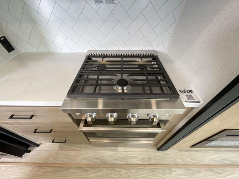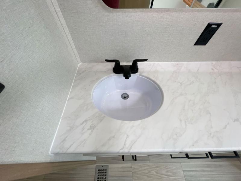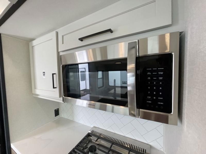 The Sandpiper Destination Trailers by Forest River are ready for extended stays at the location of your choice! The cambered powder coated frame with rust prohibitor will help extend the life of your RV and the Underbelly Armor will protect your trailer and provide better insulation. There are also color matched exterior fiberglass sidewalls outside, along with rain gutters with extra long drip spouts to prevent black streaking, and an exterior porch light just like at home. The Destination Package includes features to make your trips hassle-free, like the two 15,000 BTU A/C units, on-demand water heater, and Chef Collection three burner 24" range. A commercial style kitchen faucet and designer backsplash is included with the Extended Stay Package, as well as solid surface countertops, and a stainless steel apron sink with a strainer to name a few comforts. Available options include a central vacuum system, stabilizer jacks, plus dual pane windows and more!