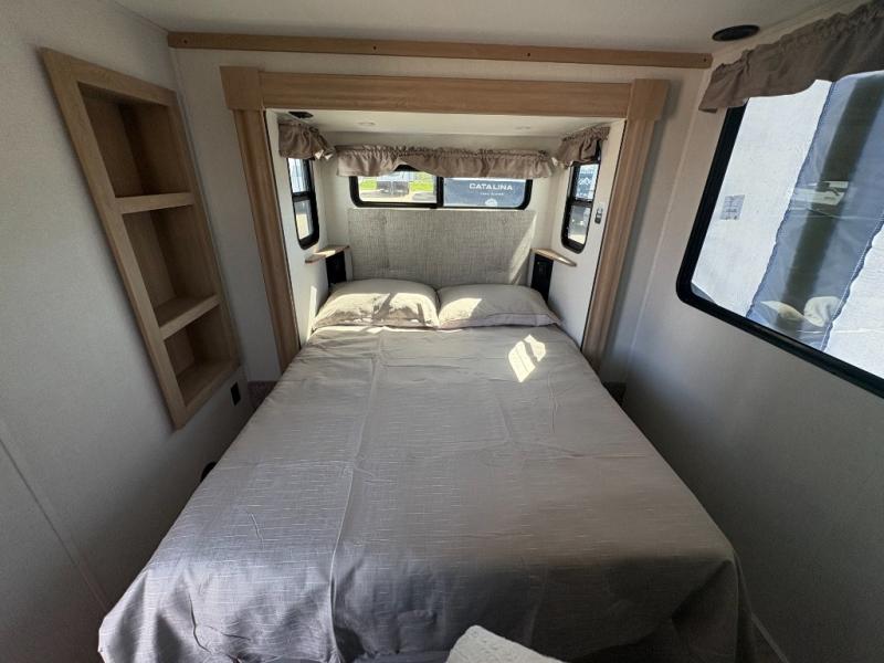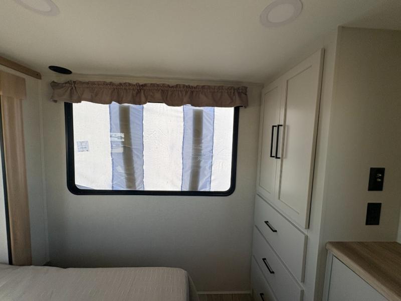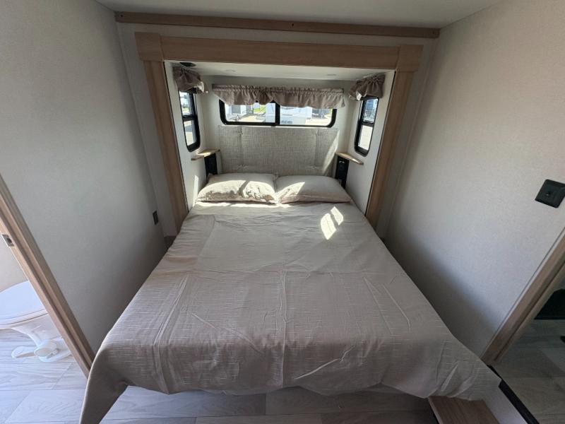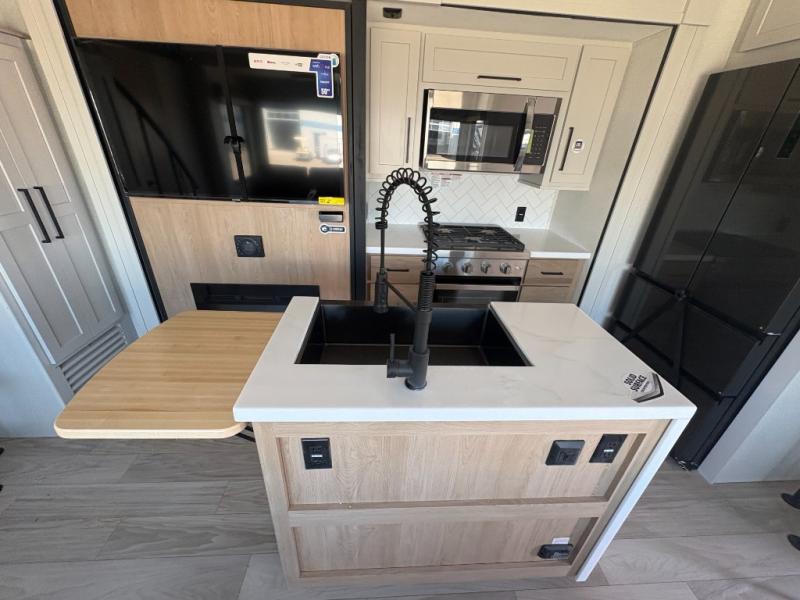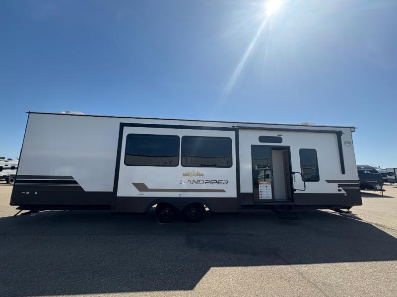 The Sandpiper Destination Trailers by Forest River are ready for extended stays at the location of your choice! The cambered powder coated frame with rust prohibitor will help extend the life of your RV and the Underbelly Armor will protect your trailer and provide better insulation. There are also color matched exterior fiberglass sidewalls outside, along with rain gutters with extra long drip spouts to prevent black streaking, and an exterior porch light just like at home. The Destination Package includes features to make your trips hassle-free, like the two 15,000 BTU A/C units, on-demand water heater, and Chef Collection three burner 24" range. A commercial style kitchen faucet and designer backsplash is included with the Extended Stay Package, as well as solid surface countertops, and a stainless steel apron sink with a strainer to name a few comforts. Available options include a central vacuum system, stabilizer jacks, plus dual pane windows and more!