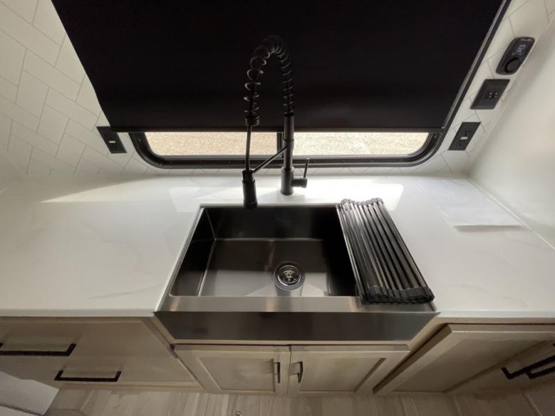 The Sandpiper Destination Trailers by Forest River are ready for extended stays at the location of your choice! The cambered powder coated frame with rust prohibitor will help extend the life of your RV and the Underbelly Armor will protect your trailer and provide better insulation. There are also color matched exterior fiberglass sidewalls outside, along with rain gutters with extra long drip spouts to prevent black streaking, and an exterior porch light just like at home. The Destination Package includes features to make your trips hassle-free, like the two 15,000 BTU A/C units, and on-demand water heater, and Chef Collection three burner 24" range. A commercial style kitchen faucet and designer backsplash is included with the Extended Stay Package, as well as solid surface countertops, and a stainless steel apron sink with a strainer to name a few comforts. Available options include a central vacuum system, stabilizer jacks, plus dual pane windows and more!
