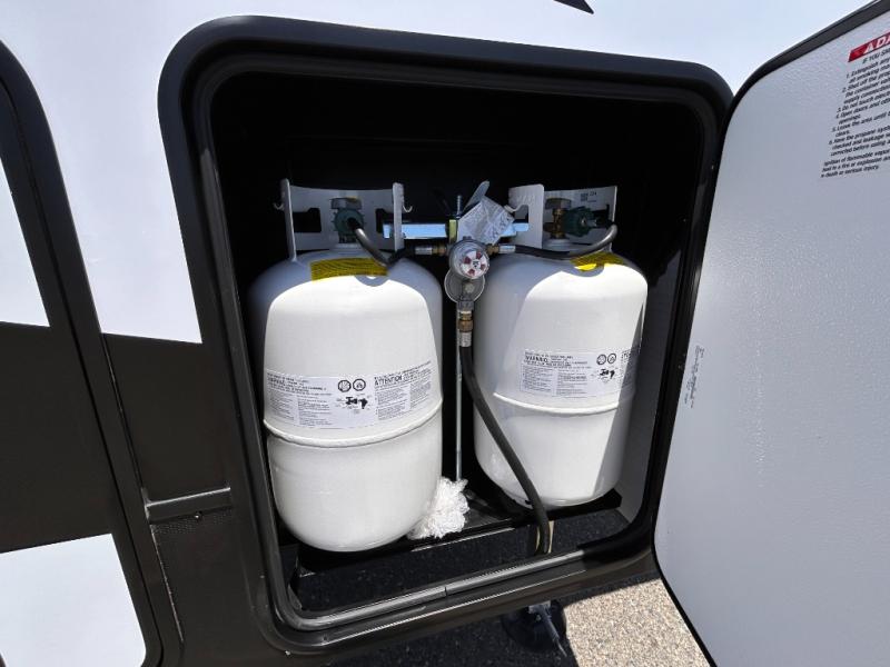 You will shock everyone where ever you go with one of these Forest River Shockwave travel trailer and fifth wheel toy haulers! Go off grid camping with a 335W solar panel. With a 40 gallon fuel station and tie downs throughout the cargo area, you can be sure your toys will safely arrive and stay fueled. The 60K BTU tankless water heater provides plenty of hot water while you're camping in the great outdoors. You will also appreciate the flipped axles with no interior drive on wheel wells and manual stabilizer jacks. Each model has its own extra Series features specific to them too. Come find yours today!