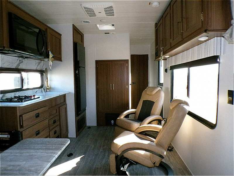 - Dual Recliners: Kick back in the two recliners located across from the sofa, offering a comfortable spot to unwind, read, or watch a movie after a day outdoors.