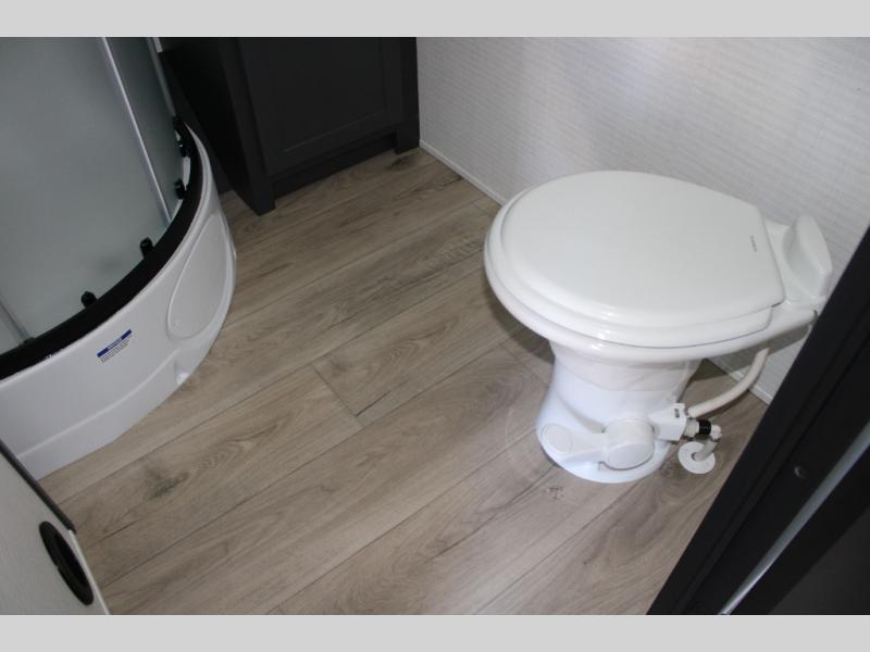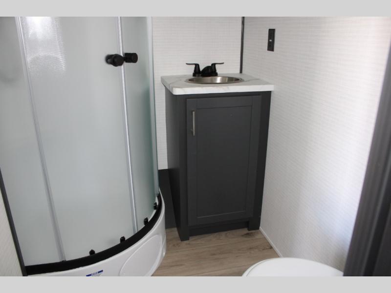 - Full Bathroom with Radius Shower – Clean up easily after a day on the trails with a spacious shower, vanity, and toilet.