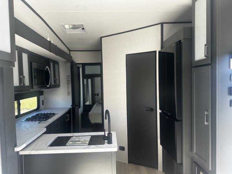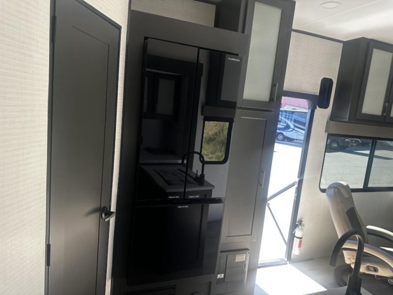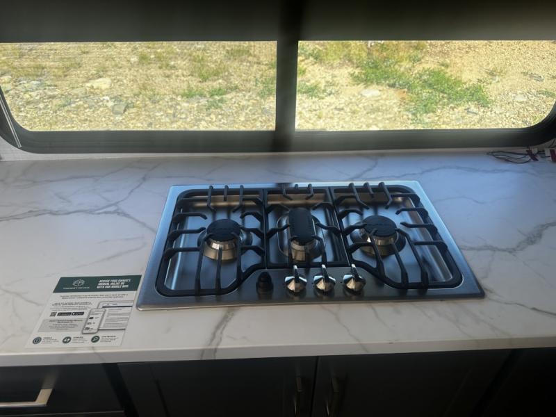 - Fully Equipped Kitchen: With a 10 cu. ft. 12V refrigerator, three-burner range, and a microwave, this kitchen is ready to handle all your meal prep needs, whether it’s a quick snack or a family dinner.