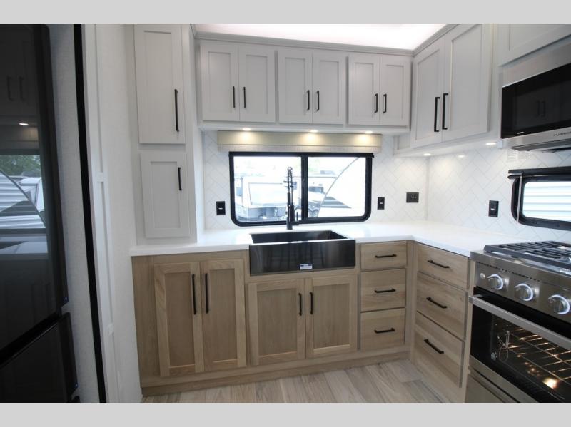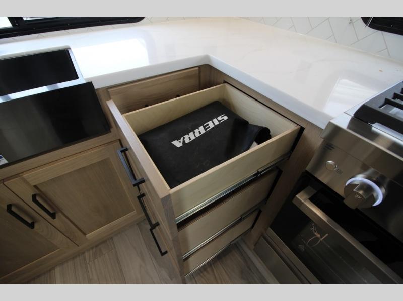 Each one of these Forest River Sierra fifth wheels are equipped with everything you need to make the most of each adventure! The underbelly armor will protect your unit's vitals from road debris and the painted two tone aerodynamic fiberglass front cap has an improved turning radius to make them easier to navigate. With an electric leveling system, you can set your unit up quick and easy then get to having fun faster than ever. The welded aluminum framed, vacuum bonded laminated superstructure will hold up through every adventure and the cambered powder coated frame comes with rust prohibitor to last longer. Each model also includes the Summit Package that comes with a king Wi-Fi extender system and Olympus antenna, a full coach water filter system, Goodyear tires with 7,000 lb. axles, and the list goes on. The interior is just as impressive with rustic wood plank linoleum, recessed residential lighting, a memory foam mattress, and mocha accent crown molding over the kitchen cabinets!