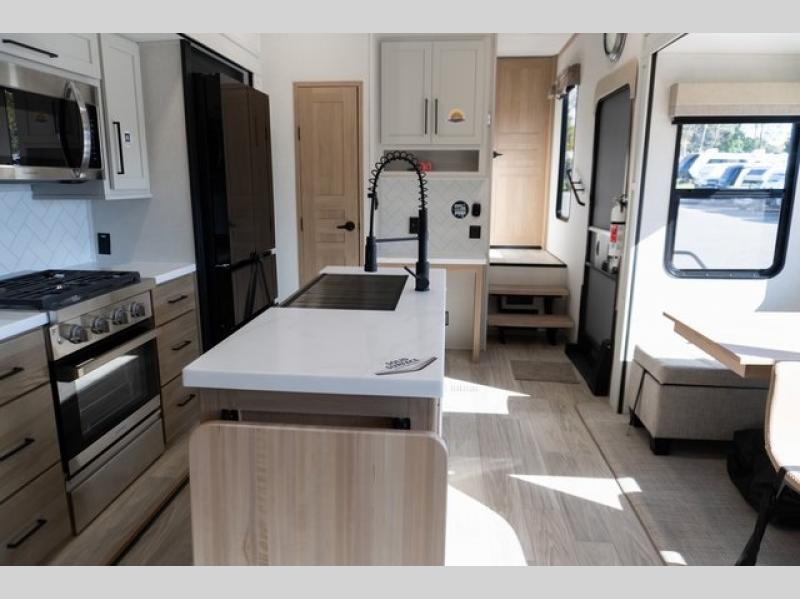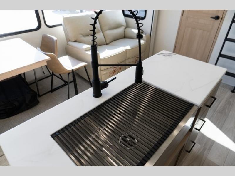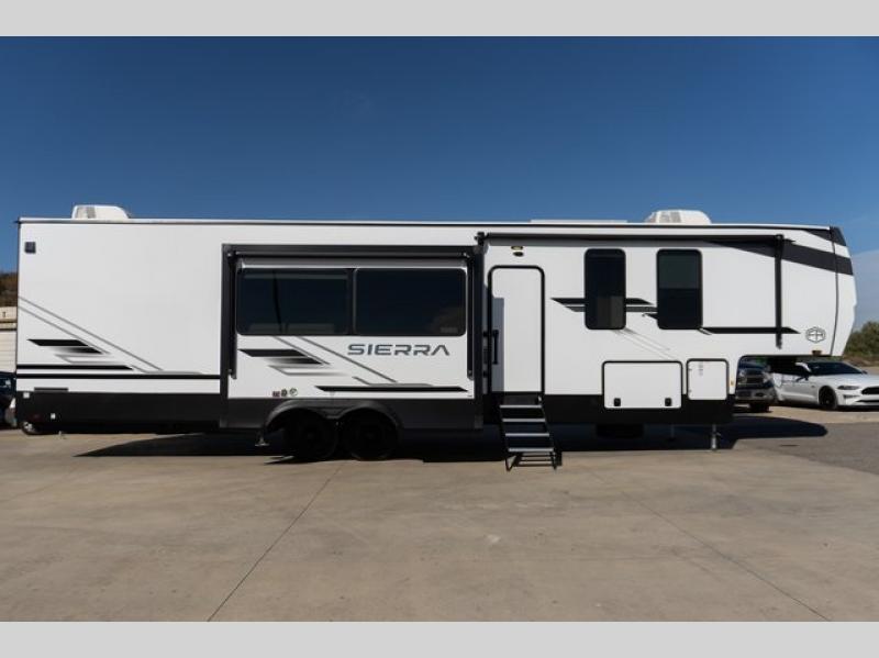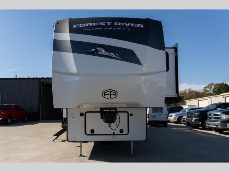 Each one of these Forest River Sierra fifth wheels are equipped with everything you need to make the most of each adventure! The underbelly armor will protect your unit's vitals from road debris and the painted two tone aerodynamic fiberglass front cap has an improved turning radius to make them easier to navigate. With an electric leveling system, you can set your unit up quick and easy then get to having fun faster than ever. The welded aluminum framed, vacuum bonded laminated superstructure will hold up through every adventure and the cambered powder coated frame comes with rust prohibitor to last longer. Each model also includes the Summit Package that comes with a king Wi-Fi extender system and Olympus antenna, a full coach water filter system, Goodyear tires with 7,000 lb. axles, and the list goes on. The interior is just as impressive with rustic wood plank linoleum, recessed residential lighting, a memory foam mattress, and mocha accent crown molding over the kitchen cabinets!