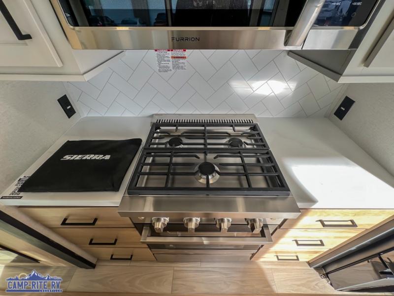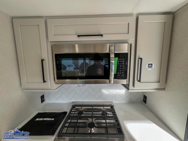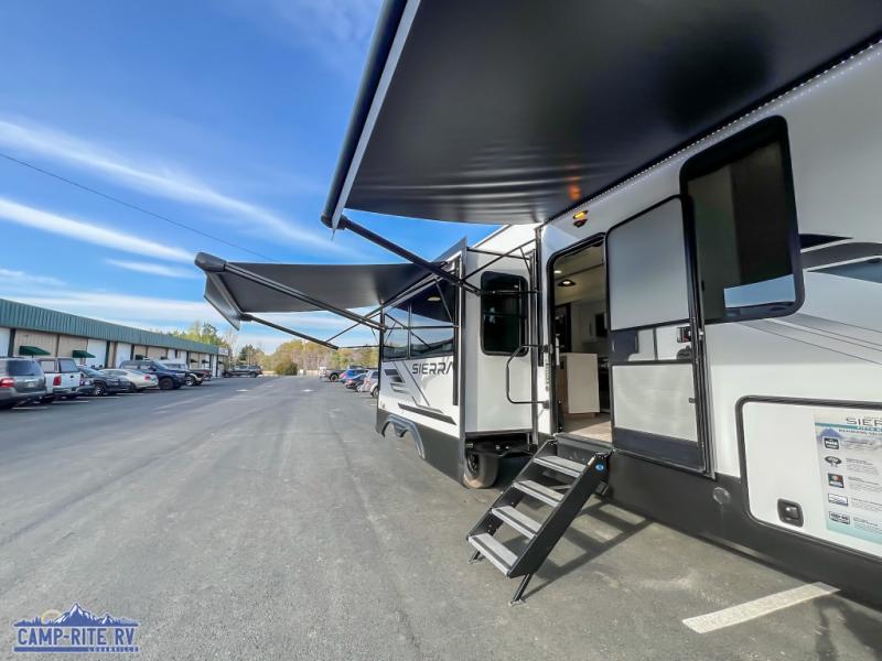 Each one of these Forest River Sierra fifth wheels are equipped with everything you need to make the most of each adventure! The underbelly armor will protect your unit's vitals from road debris and the painted two tone aerodynamic fiberglass front cap has an improved turning radius to make them easier to navigate. With an electric leveling system, you can set your unit up quick and easy then get to having fun faster than ever. The welded aluminum framed, vacuum bonded laminated superstructure will hold up through every adventure and the cambered powder coated frame comes with rust prohibitor to last longer. Each model also includes the Summit Package that comes with a king Wi-Fi extender system and Olympus antenna, a full coach water filter system, Goodyear tires with 7,000 lb. axles, and the list goes on. The interior is just as impressive with rustic wood plank linoleum, recessed residential lighting, a memory foam mattress, and mocha accent crown molding over the kitchen cabinets!