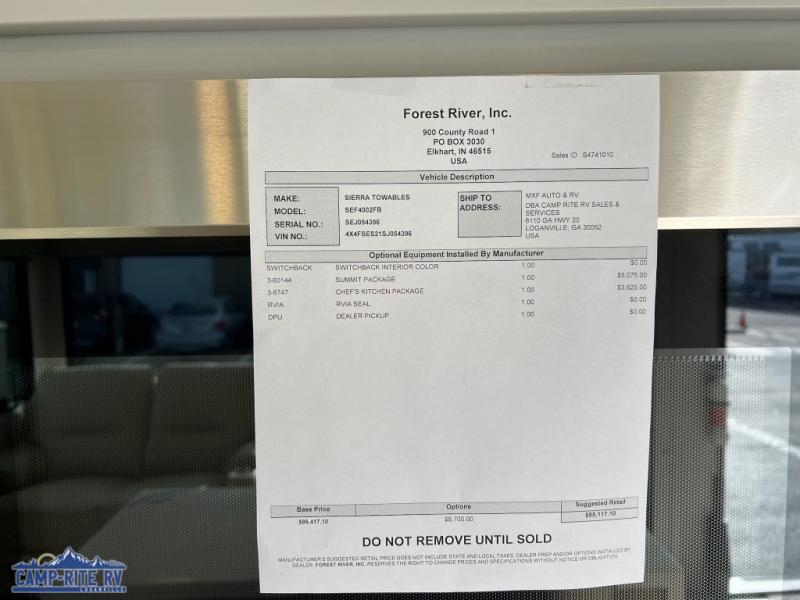New 2025 Forest River RV Sierra 4002FB Fifth Wheel