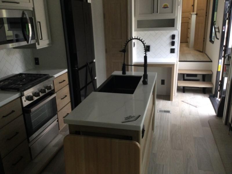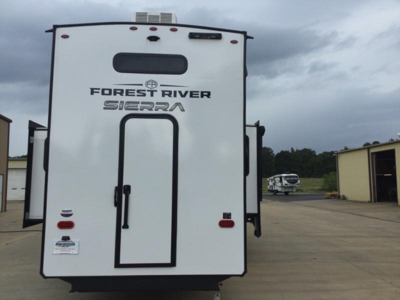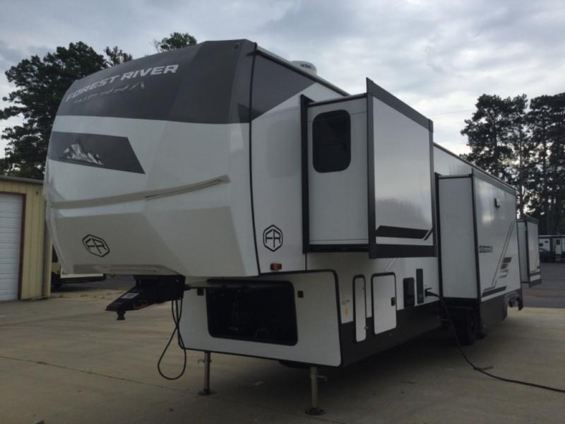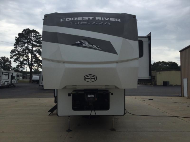 Each one of these Forest River Sierra fifth wheels are equipped with everything you need to make the most of each adventure! The underbelly armor will protect your unit's vitals from road debris and the painted two tone aerodynamic fiberglass front cap has an improved turning radius to make them easier to navigate. With an electric leveling system, you can set your unit up quick and easy then get to having fun faster than ever. The welded aluminum framed, vacuum bonded laminated superstructure will hold up through every adventure and the cambered powder coated frame comes with rust prohibitor to last longer. Each model also includes the Summit Package that comes with a king Wi-Fi extender system and Olympus antenna, a full coach water filter system, Goodyear tires with 7,000 lb. axles, and the list goes on. The interior is just as impressive with rustic wood plank linoleum, recessed residential lighting, a memory foam mattress, and mocha accent crown molding over the kitchen cabinets!