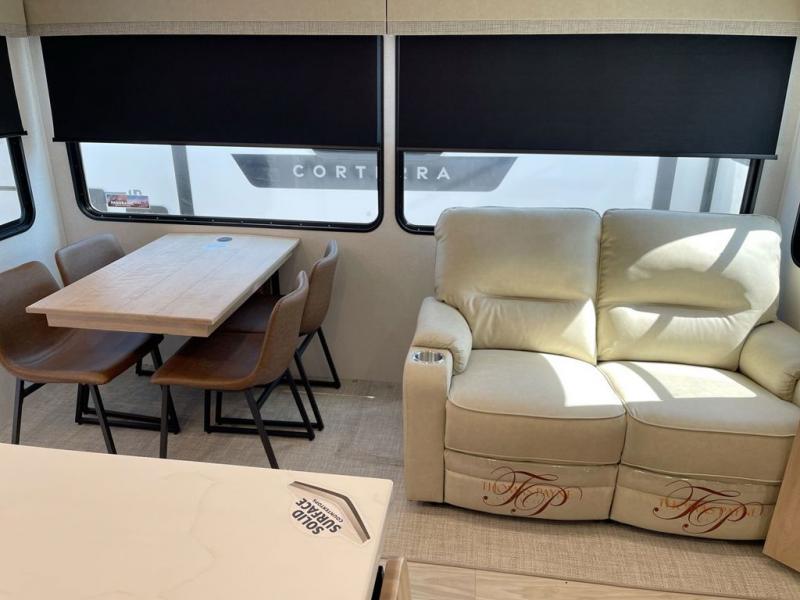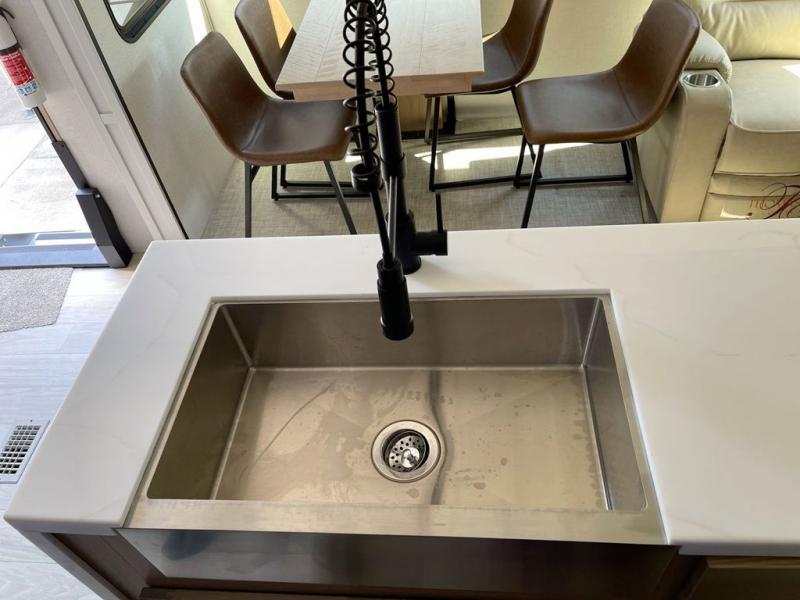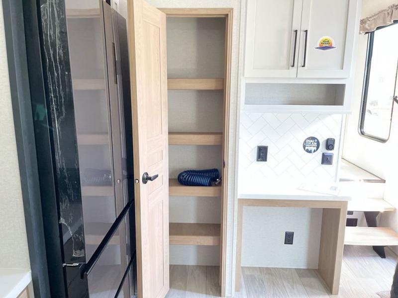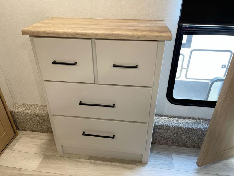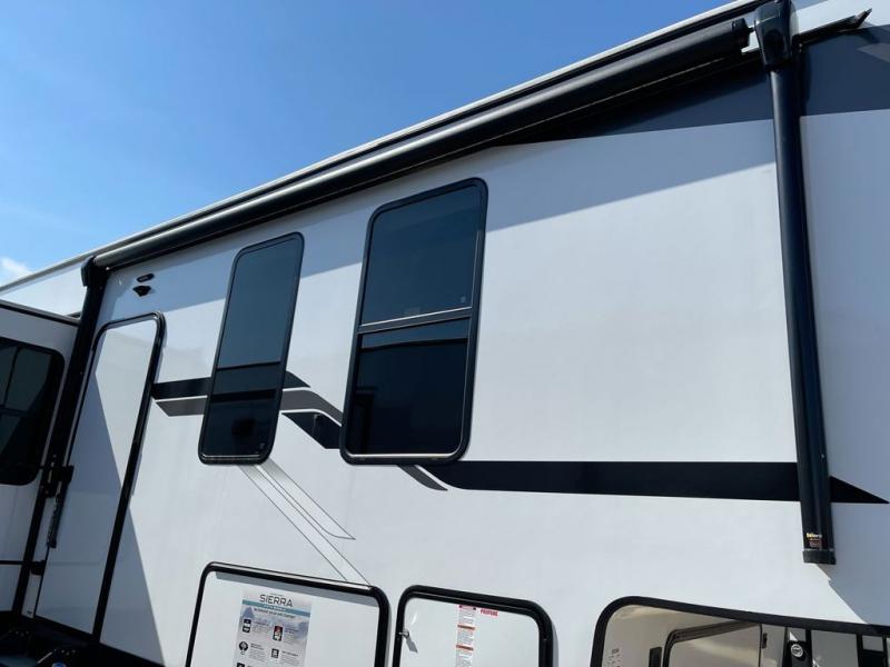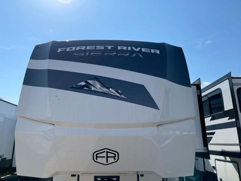 Each one of these Forest River Sierra fifth wheels are equipped with everything you need to make the most of each adventure! The underbelly armor will protect your unit's vitals from road debris and the painted two tone aerodynamic fiberglass front cap has an improved turning radius to make them easier to navigate. With an electric leveling system, you can set your unit up quick and easy then get to having fun faster than ever. The welded aluminum framed, vacuum bonded laminated superstructure will hold up through every adventure and the cambered powder coated frame comes with rust prohibitor to last longer. Each model also includes the Summit Package that comes with a king Wi-Fi extender system and Olympus antenna, a full coach water filter system, Goodyear tires with 7,000 lb. axles, and the list goes on. The interior is just as impressive with rustic wood plank linoleum, recessed residential lighting, a memory foam mattress, and mocha accent crown molding over the kitchen cabinets!
