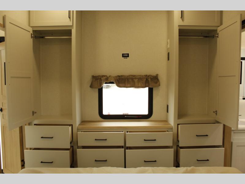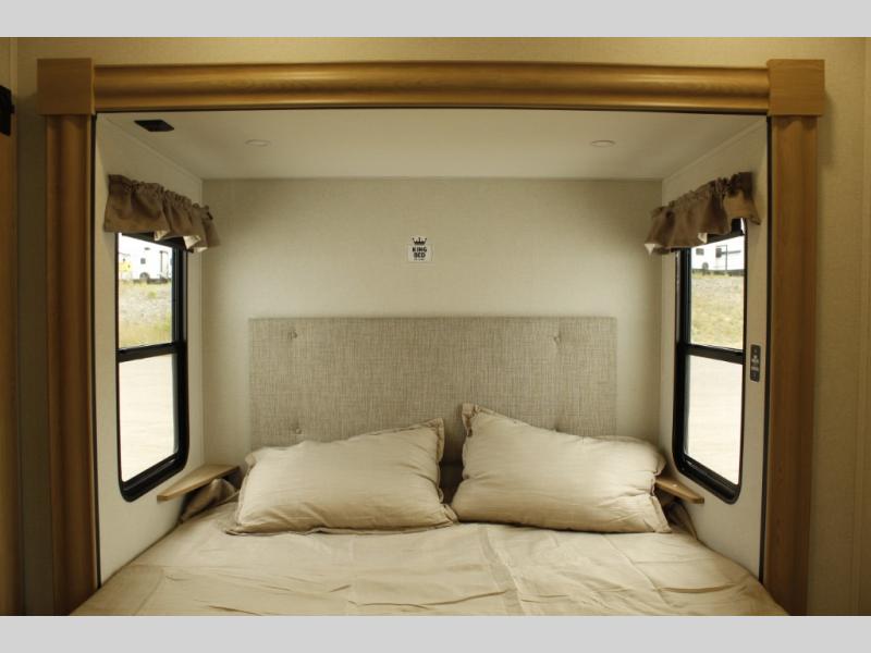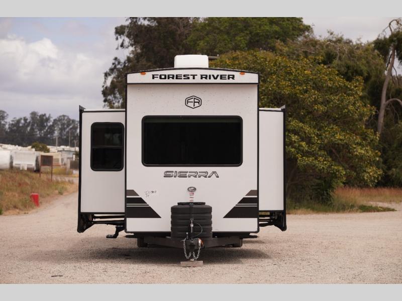 With each Sierra Destination Trailer by Forest River you will enjoy many luxurious features, such as crown molding over the kitchen cabinets, solid surface kitchen countertops, a memory foam mattress, plus so much more. The extra large picture windows throughout let natural light in and provide beautiful outdoor views, and each model includes three or more slides for added interior space. You'll find many exterior conveniences, like the porch light with an interior switch, the rain gutters with extra long drip spouts to prevent black streaking, and an electric awning with LED light strip, plus more! You will stay comfortable year around with dual 15,000 A/C units and the high-efficiency radiant foil in the roof and floor, plus each model is constructed with an Underbelly Armor for better insulation!