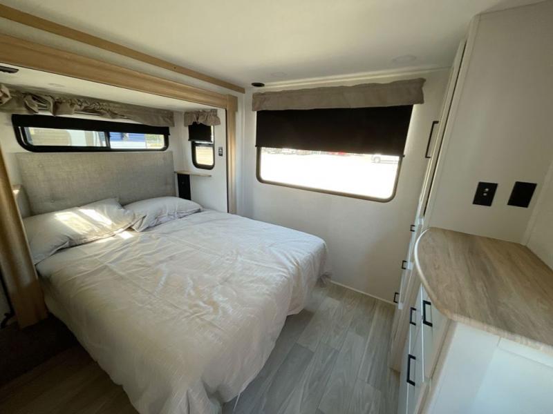 With each Sierra Destination Trailer by Forest River you will enjoy many luxurious features, such as crown molding over the kitchen cabinets, solid surface kitchen countertops, a memory foam mattress, plus so much more. The extra large picture windows throughout let natural light in and provide beautiful outdoor views, and each model includes three or more slides for added interior space. You'll find many exterior conveniences, like the porch light with an interior switch, the rain gutters with extra long drip spouts to prevent black streaking, and an electric awning with LED light strip, plus more! You will stay comfortable year around with dual 15,000 A/C units and the high-efficiency radiant foil in the roof and floor, plus each model is constructed with an Underbelly Armor for better insulation!