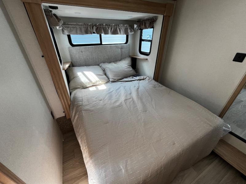 With each Sierra Destination Trailer by Forest River you will enjoy many luxurious features, such as crown molding over the kitchen cabinets, solid surface kitchen countertops, a memory foam mattress, plus so much more. The extra large picture windows throughout let natural light in and provide beautiful outdoor views, and each model includes three or more slides for added interior space. You'll find many exterior conveniences, like the porch light with an interior switch, the rain gutters with extra long drip spouts to prevent black streaking, and an electric awning with LED light strip, plus more! You will stay comfortable year around with dual 15,000 A/C units and the high-efficiency radiant foil in the roof and floor, plus each model is constructed with an Underbelly Armor for better insulation!