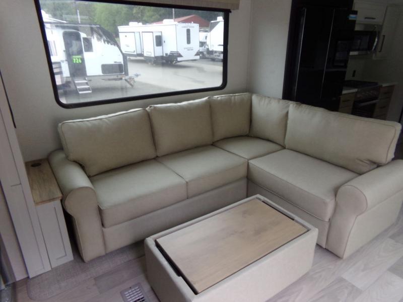 With each Sierra Destination Trailer by Forest River you will enjoy many luxurious features, such as crown molding over the kitchen cabinets, solid surface kitchen countertops, a memory foam mattress, plus so much more. The extra large picture windows throughout let natural light in and provide beautiful outdoor views, and each model includes three or more slides for added interior space. You'll find many exterior conveniences, like the porch light with an interior switch, the rain gutters with extra long drip spouts to prevent black streaking, and an electric awning with LED light strip, plus more! You will stay comfortable year around with dual 15,000 A/C units and the high-efficiency radiant foil in the roof and floor, plus each model is constructed with an Underbelly Armor for better insulation!