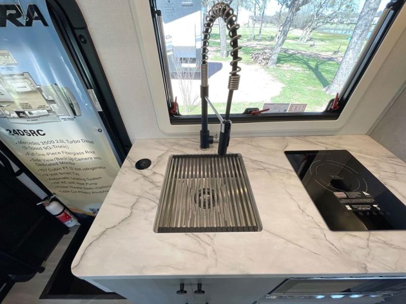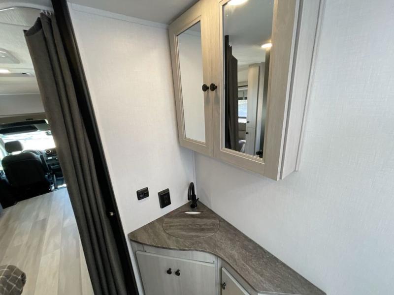 Each one of these Forest River Solera Class C gas and diesel motorhomes proclaim the style of a new generation! There is a convenient keyless entry, a backup and side view camera system, and a 10" in-dash touch screen Apple Carplay/Android Auto radio. The Ford E350/Chevy 3500, Ford E450 or Mercedes-Benz Sprinter 3500 chassis also help with the smooth ride. Each model includes aluminum framed laminated sidewalls, superlite composite substrate, and a gel coat exterior fiberglass for added durability. Inside, you will enjoy the MCD roller shades, residential style furniture with Fortress stain resistant fabrics, soft touch self-closing drawer guides, and many more comforts. And you can stay connected where ever you go with the Winegard Air 360+ antenna with Gateway 4G WiFi capability.