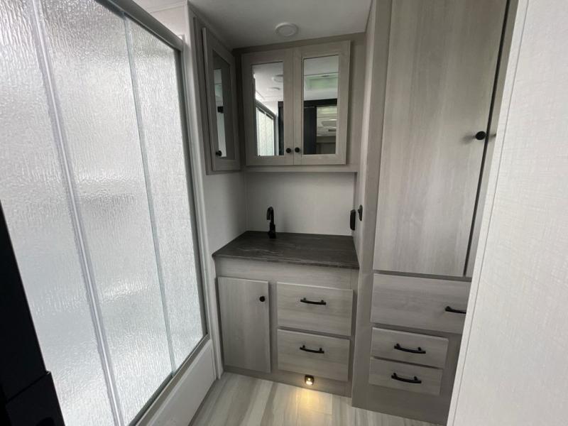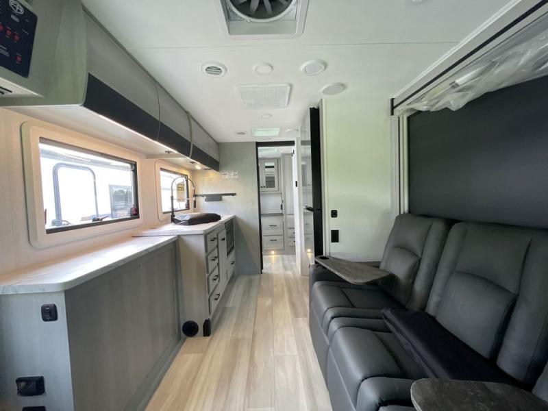 Each one of these Forest River Solera Class C gas and diesel motorhomes proclaim the style of a new generation! There is a convenient keyless entry, a backup and side view camera system, and a 10" in-dash touch screen Apple Carplay/Android Auto radio. The Ford E350/Chevy 3500, Ford E450 or Mercedes-Benz Sprinter 3500 chassis also help with the smooth ride. Each model includes aluminum framed laminated sidewalls, superlite composite substrate, and a gel coat exterior fiberglass for added durability. Inside, you will enjoy the MCD roller shades, residential style furniture with Fortress stain resistant fabrics, soft touch self-closing drawer guides, and many more comforts. And you can stay connected where ever you go with the Winegard Air 360+ antenna with Gateway 4G WiFi capability.