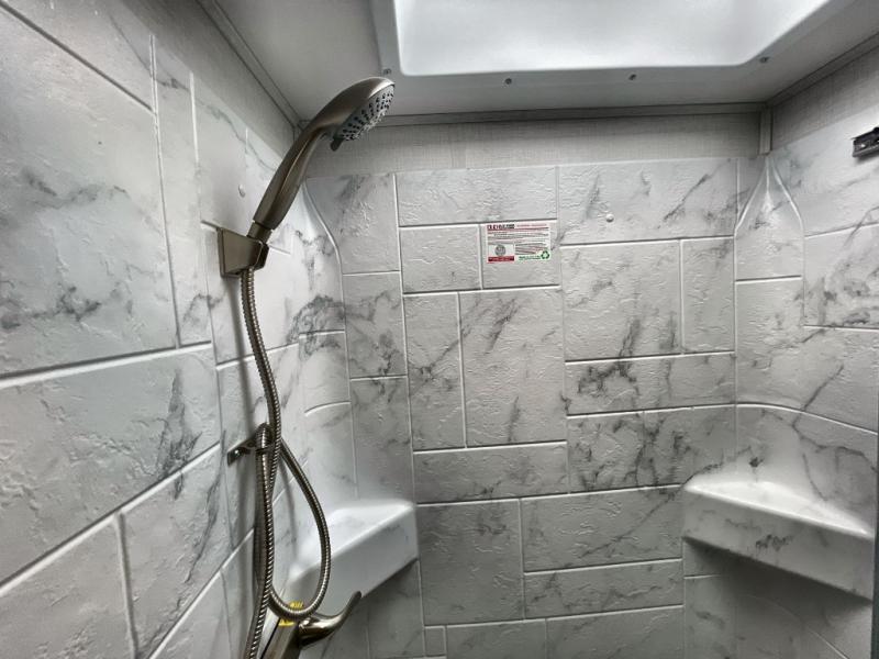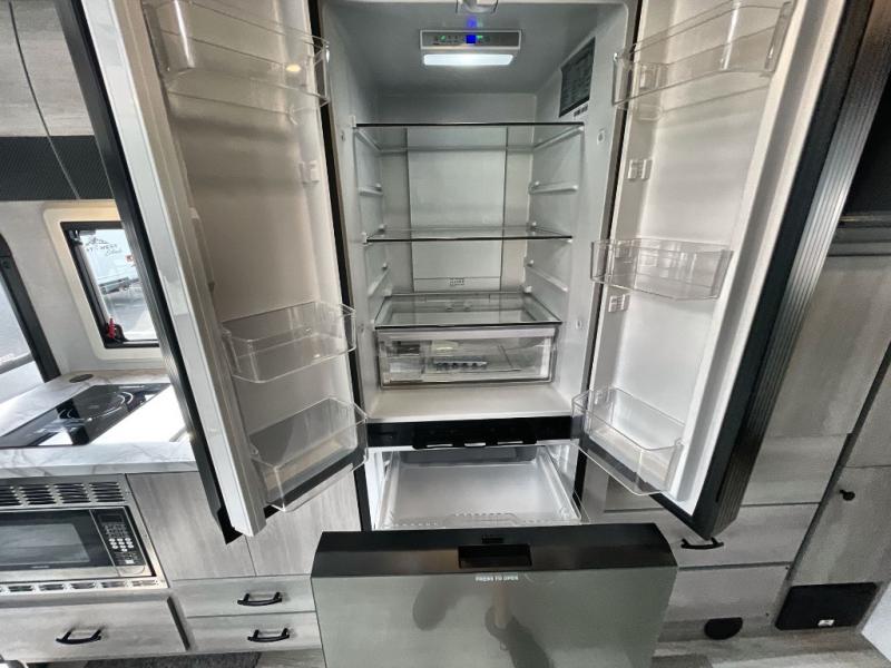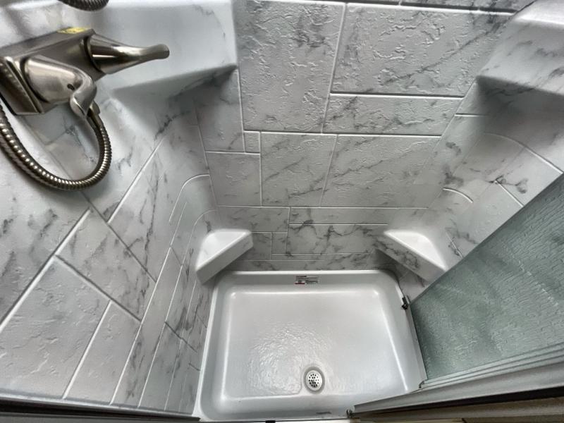 Head out on a luxurious vacation in this motorhome! Stay squeaky clean with a full rear bathroom that has a 24" x 36" shower featuring an oxygen-infused shower head with flexible extension and a skylight above for added natural lighting. The 60" x 75" queen Murphy bed creates versatility by offering a comfortable place to lay your head at night and a sofa with a removable table to enjoy meals during the day. Speaking of meals, you can prepare your best home cooked ones using the two burner cooktop and flip-up countertop. Next to the 10.7 cu. ft. refrigerator there is a 12V TV with drawers below and hidden storage behind it, plus a closet to keep your clothes tidy!