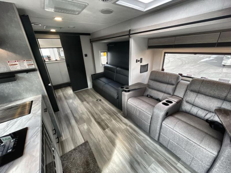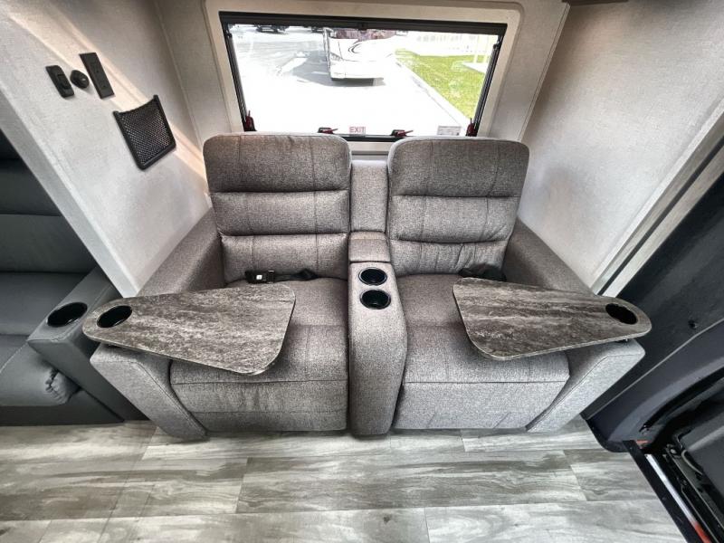 Each one of these Forest River Solera Class C gas and diesel motorhomes proclaim the style of a new generation! There is a convenient keyless entry, a backup and side view camera system, and a 10" in-dash touch screen Apple Carplay/Android Auto radio. The Ford E350/Chevy 3500, Ford E450 or Mercedes-Benz Sprinter 3500 chassis also help with the smooth ride. Each model includes aluminum framed laminated sidewalls, superlite composite substrate, and a gel coat exterior fiberglass for added durability. Inside, you will enjoy the MCD roller shades, residential style furniture with Fortress stain resistant fabrics, soft touch self-closing drawer guides, and many more comforts. And you can stay connected where ever you go with the Winegard Air 360+ antenna with Gateway 4G WiFi capability.