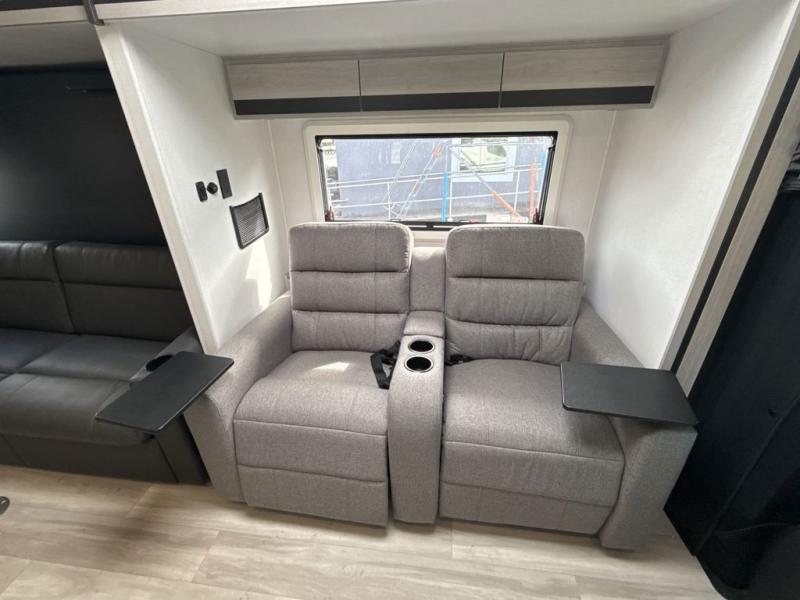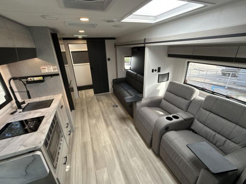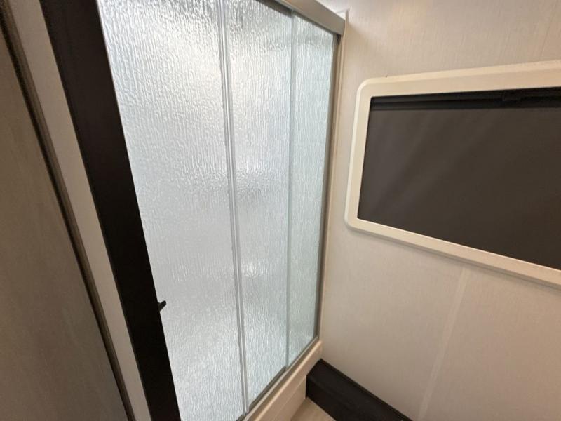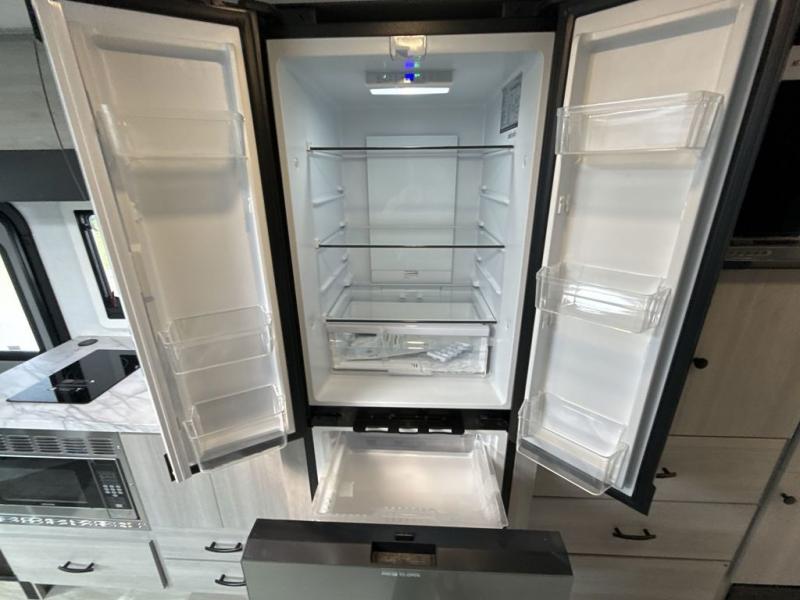 Head out on a luxurious vacation in this motorhome! Stay squeaky clean with a full rear bathroom that has a 24" x 36" shower featuring an oxygen-infused shower head with flexible extension and a skylight above for added natural lighting. The 60" x 75" queen Murphy bed creates versatility by offering a comfortable place to lay your head at night and a sofa with a removable table to enjoy meals during the day. Speaking of meals, you can prepare your best home cooked ones using the two burner cooktop and flip-up countertop. Next to the 10.7 cu. ft. refrigerator there is a 12V TV with drawers below and hidden storage behind it, plus a closet to keep your clothes tidy!