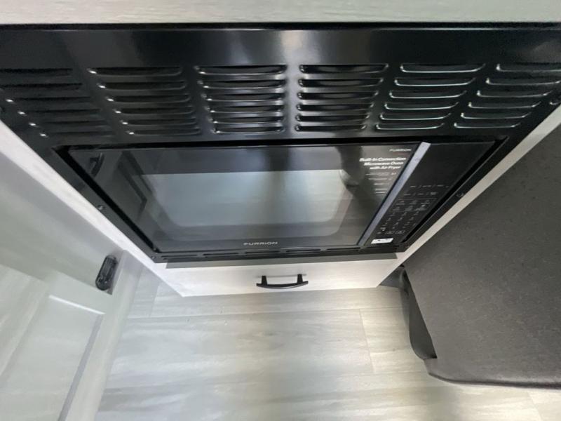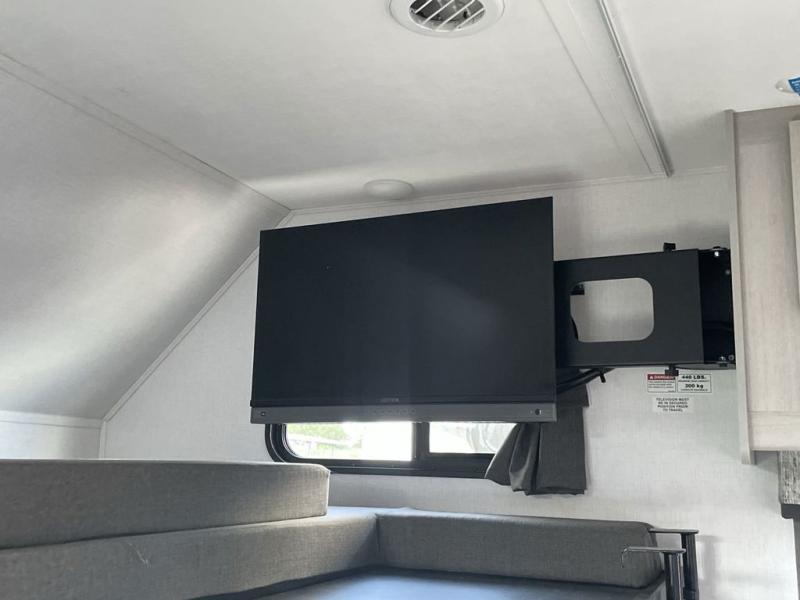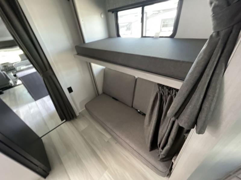 The whole family can travel together in this motorhome! You will enjoy your own sleeping space with a 60" x 74" queen bed across from the large wardrobe in the rear private bedroom. The kiddos will love having a 28" x 72" flip-down bunk above a kid's sofa sleeper and the 60" x 80" bunk over cab. You could even transform the booth dinette and sofa into extra sleeping spaces if needed. Keep everyone's bellies full with full kitchen amenities including a three burner cooktop, a 10.7 cu. ft. 12V refrigerator, flip-up countertop, and a convection microwave. Stay protected rain or shine by the 11' power awning, and crank up the tunes with exterior speakers!