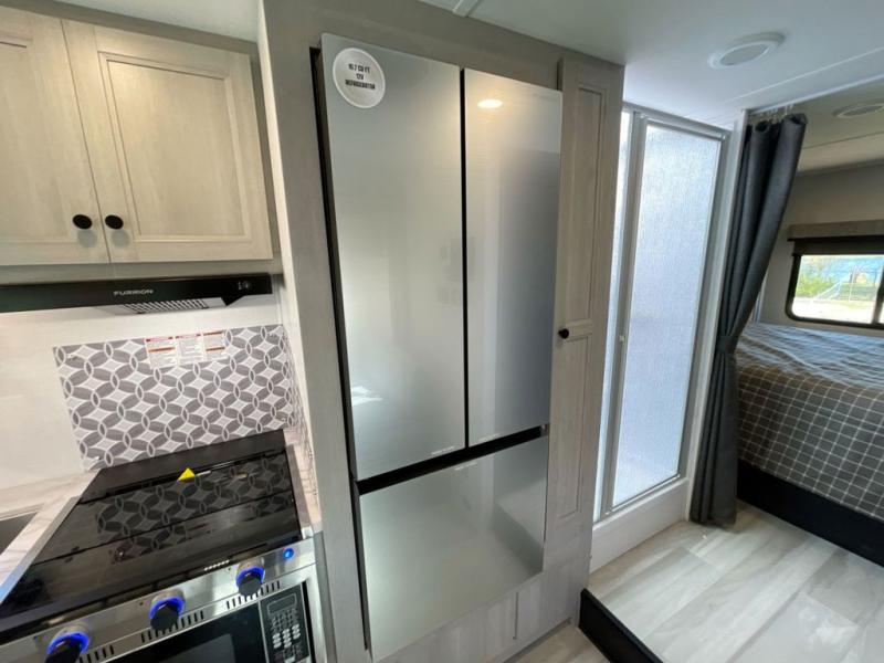 Pack your bags and pick your favorite destination then head out in this motorhome! The rear private bedroom has a 60" x 74" queen bed slide for more interior space, and a linen closet with wardrobes on either side of it. There is also a split-style bath with a private toilet and sink, and the shower is right across the hall. Prepare your best home cooked meals using the three burner cooktop, enjoy dining at the U-shaped dinette, and store any leftovers in the 10.7 cu. ft. 12V refrigerator. You will also appreciate a bit of flip-up countertop for more meal prepping space. Relax each evening on the 66" sofa, or you can replace it for the optional power theater seating. There is even a 60" x 80" bunk over the cab for extra sleeping or storage space!