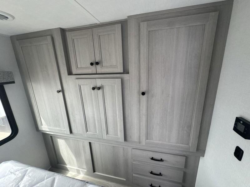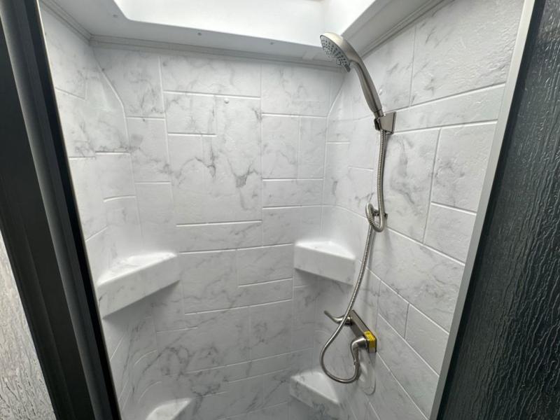 Pack your bags and pick your favorite destination then head out in this motorhome! The rear private bedroom has a 60" x 74" queen bed slide for more interior space, and a linen closet with wardrobes on either side of it. There is also a split-style bath with a private toilet and sink, and the shower is right across the hall. Prepare your best home cooked meals using the three burner cooktop, enjoy dining at the U-shaped dinette, and store any leftovers in the 10.7 cu. ft. 12V refrigerator. You will also appreciate the flip-up countertop for more meal prepping space. Relax each evening on the 66" sofa, or you can replace it for the optional power theater seating. There is even a 60" x 80" bunk over the cab for extra sleeping or storage space!